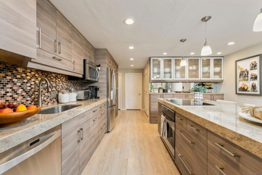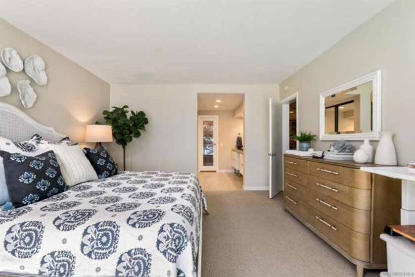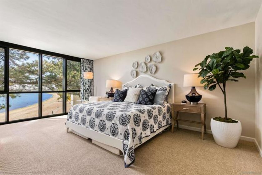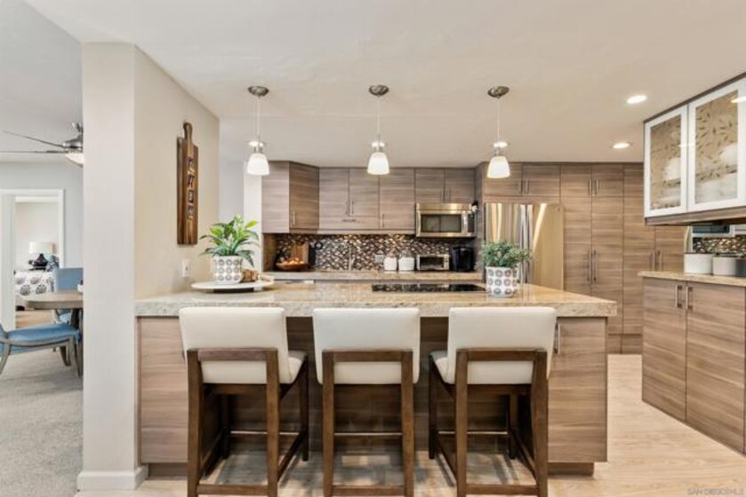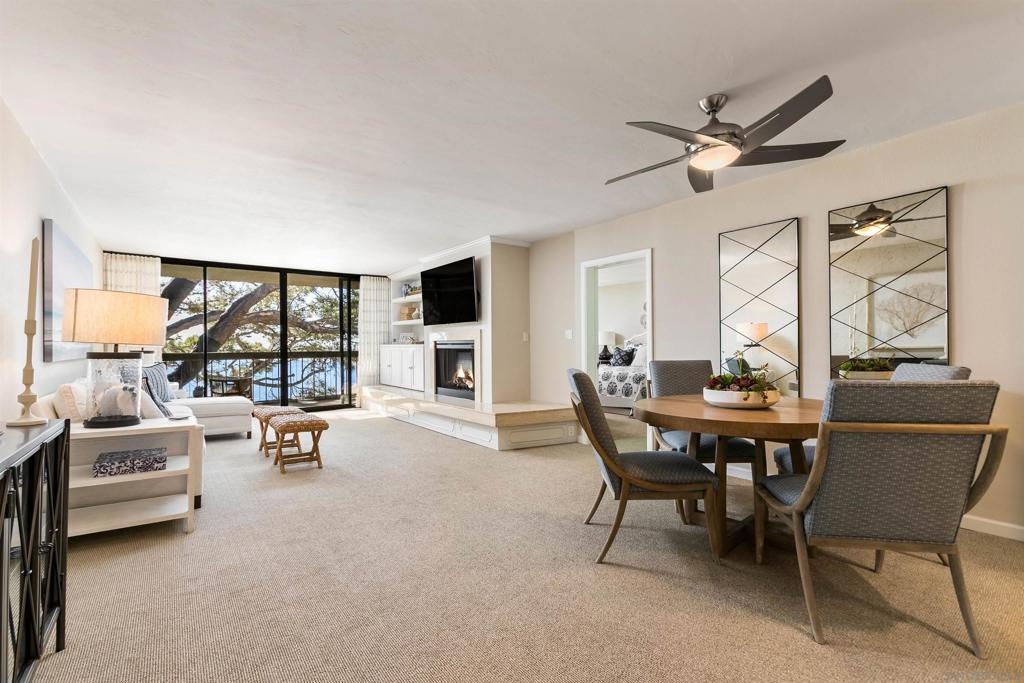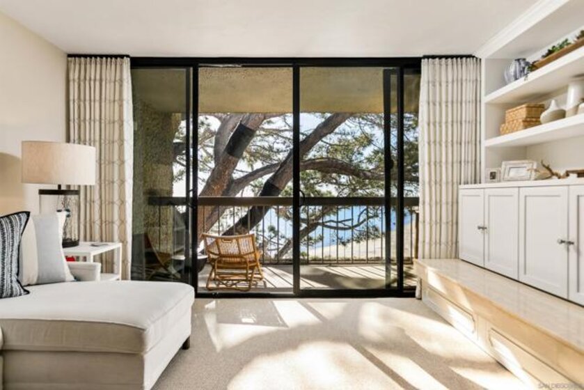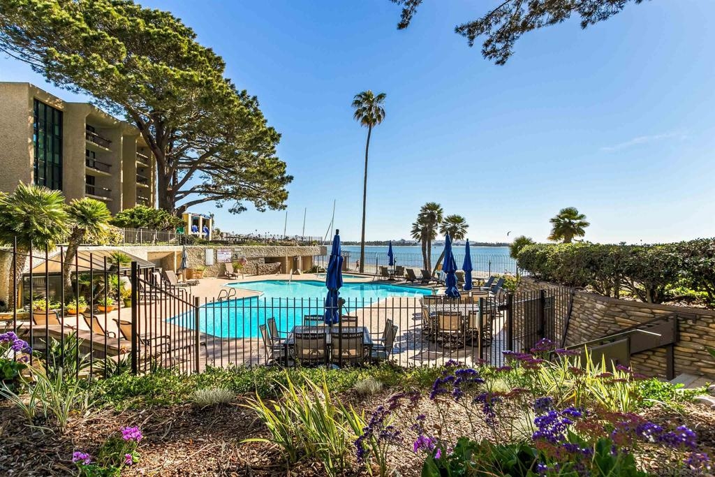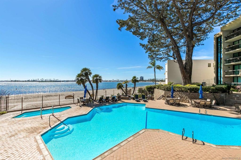Gracing the shoreline of Sail Bay, this exceptional top-floor penthouse in Bay Scene’s coveted Tower One offers refined waterfront living with sweeping southwest views of the bay and Pacific horizon. Framed by a majestic 150-year-old Torrey Pine, panoramic vistas extend from the living room, dining area, kitchen, and both bedrooms. Spanning approximately 1,559 square feet, the beautifully renovated two-bedroom, two-bath residence is designed for privacy and functionality, with no shared living-area walls, ideal bedroom separation, marble surround fireplace, in-unit laundry, and ample storage. Timeless finishes include a remodeled kitchen with quartz countertops, soft-close cabinetry, and stainless-steel appliances. A covered balcony invites you to relax and enjoy the coastal scenery. The home includes two assigned underground parking spaces and access to a secure garage with car-washing area. Bay Scene is Sail Bay’s premier bayfront condominium community, offering resort-style amenities: a heated waterfront pool and spa, BBQ areas, fitness center, clubhouse, kayak and paddleboard storage, elevators, secure entry, and direct access to the sand and boardwalk. Just moments from the ocean, parks, shops, and dining, this rare penthouse delivers luxury coastal living at its finest.