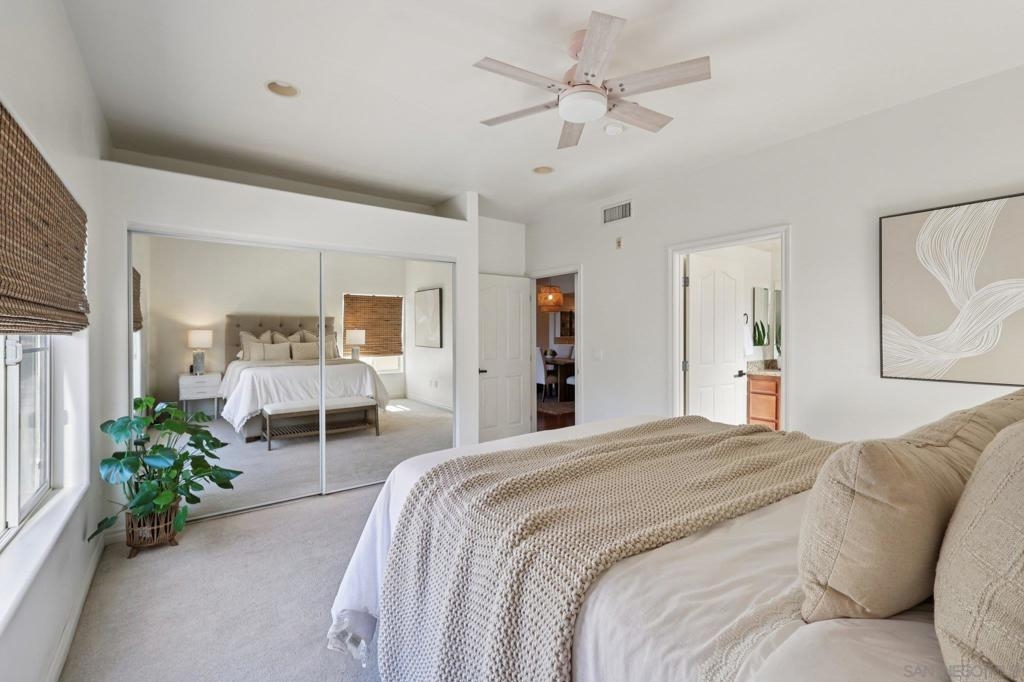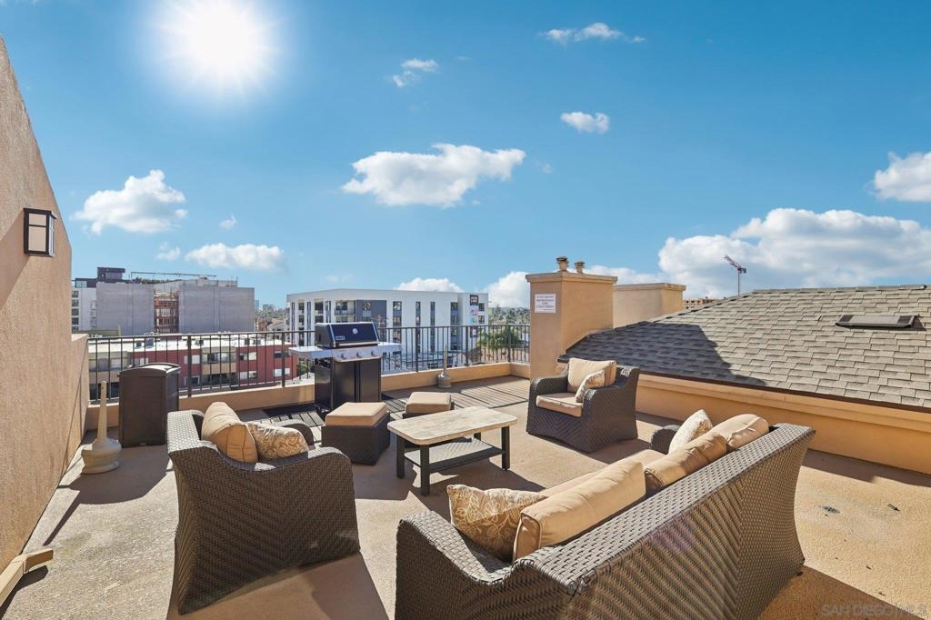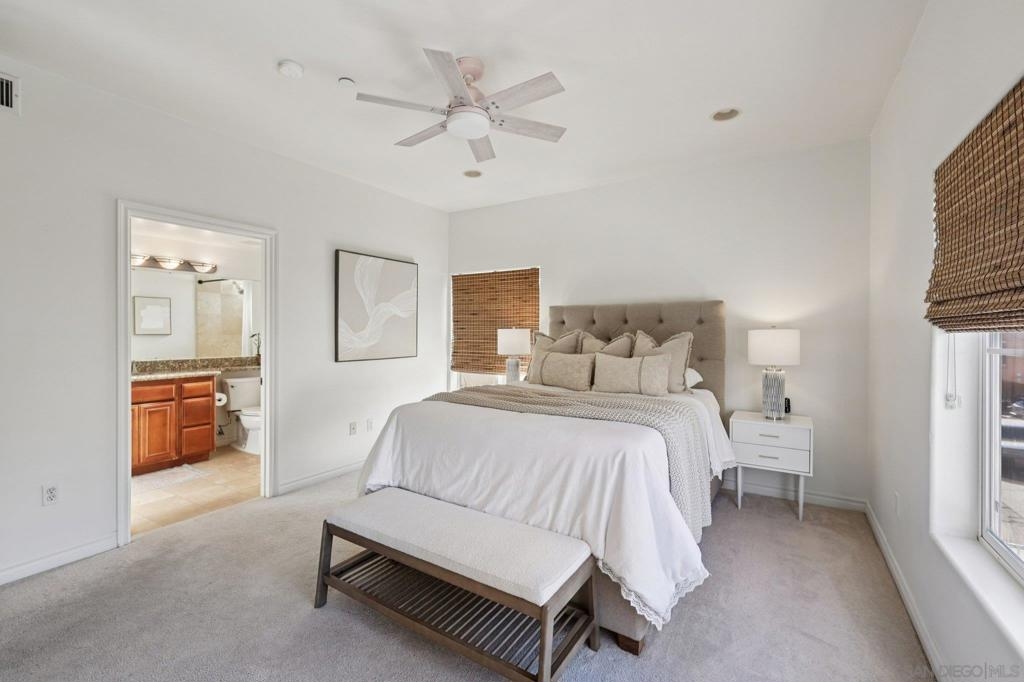 You’ve found one of Hillcrest’s most compelling opportunities—a rare first-floor corner-unit residence offering a prime location, exceptional layout, and light-filled living. Set within a newer, well-maintained building, this home features soaring 9-foot ceilings, abundant natural light, and a seamless blend of comfort and functionality. The spacious primary suite offers an en-suite bathroom and generous space rarely found in condo living, while the secondary bedroom is positioned across the hall—perfect for guests, a home office, or added privacy. A full-size in-unit washer and dryer, ample interior storage, and an additional storage closet off the balcony enhance everyday convenience. A newer HVAC system with Google Nest thermostat provides smart, energy-efficient comfort year-round. Enjoy indoor-outdoor living from the balcony, or unwind on one of the building’s two rooftop decks with city views, ideal for relaxing or entertaining. This FHA & VA approved community features a dedicated bike storage room, secured gated parking, and no dog breed restrictions. Ideally situated in Hillcrest, you’re just a short stroll to University Heights, North Park, Balboa Park, the San Diego Zoo, and everyday amenities. Spend weekends one block away at the iconic Hillcrest Farmers Market and enjoy nearby favorites like InsideOUT, Trust, Great Maple, and the vibrant scene along 5th & University. Light-filled, well-appointed, and perfectly positioned—this is Hillcrest living at its best.