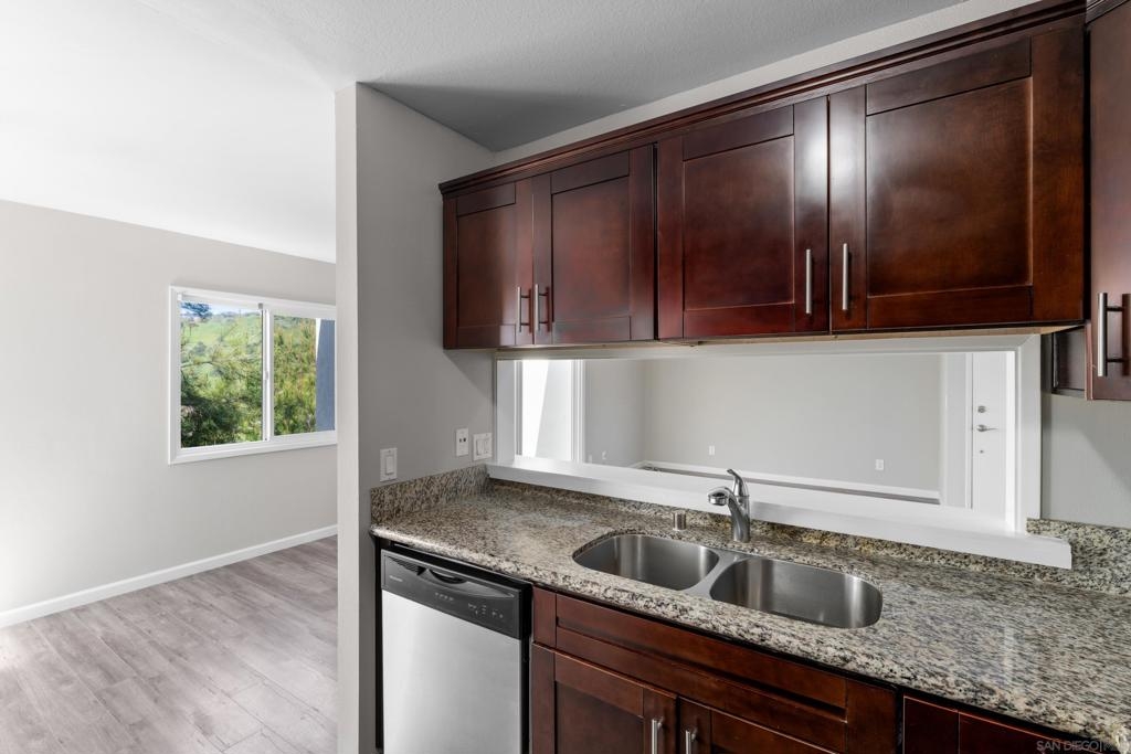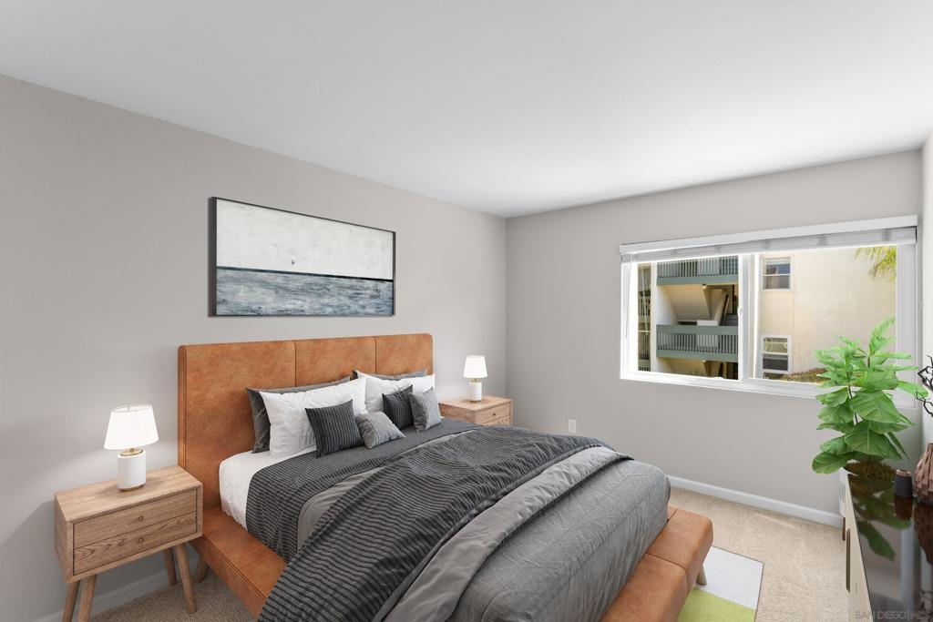 Located in San Diego’s desirable Bay Ho neighborhood, this recently updated 2-bedroom, 1-bath condo blends modern comfort with stunning Mission Bay views. Perched on the second floor as an end unit, it offers privacy and abundant natural light. The open-concept living, dining, and kitchen space features laminate flooring, a sleek granite-topped kitchen with stainless steel appliances, and a convenient breakfast bar. The newly renovated bathroom features contemporary vanities and fixtures. Freshly painted, this spacious condo welcomes you with dual-pane windows for energy efficiency and sound insulation, plus a private balcony to enjoy sunsets, greenery, and SeaWorld fireworks views. An in-unit washer/dryer combo and generous closet space provide added convenience and storage. The well-maintained complex provides resort-style amenities including a clubhouse, pool, Jacuzzi, and BBQ area. Located minutes from I-5, beaches, and Mission Bay, this prime location offers walkable access to shopping, dining, and outdoor recreation including San Clemente Canyon Trail. With Costco and other amenities nearby, this condo blends coastal living with convenience. Don't miss this opportunity to enjoy coastal San Diego living at its finest!