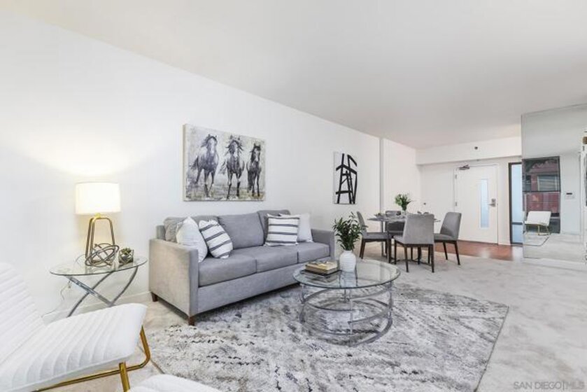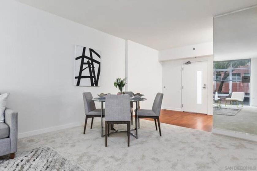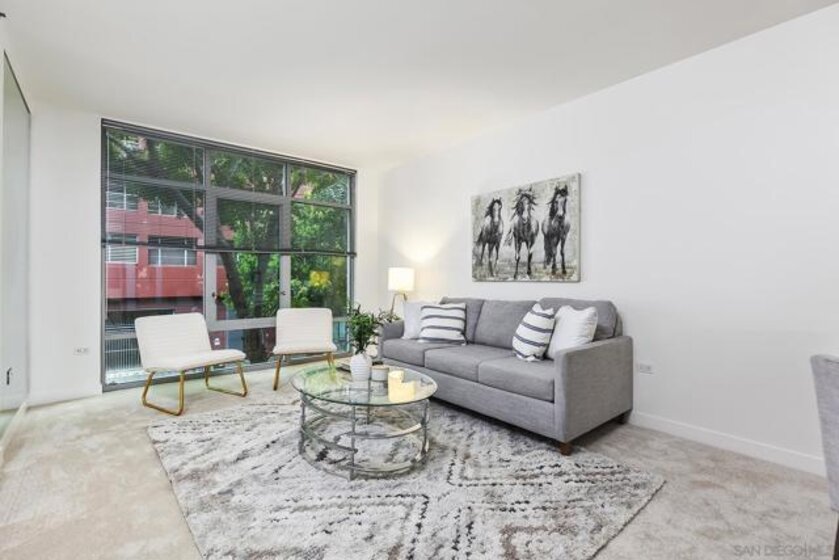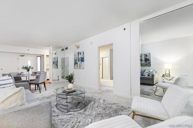 Welcome to your urban-meets-coastal escape in the heart of San Diego! This charming 766-square-foot condo, built in 2004, is tucked within the highly sought-after Acquavista community, offering a perfect balance of tranquility, comfort, and vibrant city living. Nestled in the center of Little Italy, you’ll be just steps away from buzzing cafés, iconic restaurants, artisan markets, and peaceful waterfront strolls. Inside, this inviting one-bedroom, one-bath retreat features an open layout that seamlessly connects the living, dining, and kitchen areas—excellent for entertaining or unwinding after a day of exploring the city. The charming galley-style kitchen offers a refrigerator, microwave, and dishwasher, providing everything you need for easy, efficient daily living. Residents enjoy an impressive array of community amenities, including a sparkling rooftop pool & spa, a fitness center, two welcoming lobbies, and outdoor barbecue areas perfect for gatherings. Additional conveniences—such as air conditioning and valet garage parking for one car—enhance your everyday comfort. In-unit laundry makes chores a breeze, giving you more time to enjoy Little Italy’s lively energy or take in San Diego’s stunning shoreline. Your ideal San Diego home awaits—don’t miss this incredible opportunity!