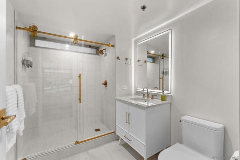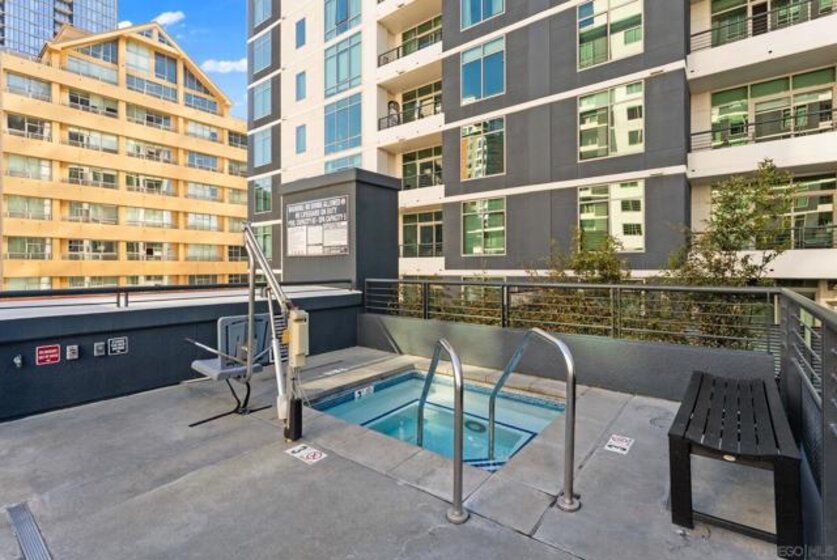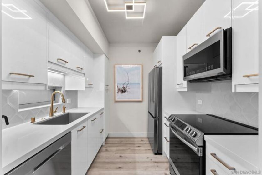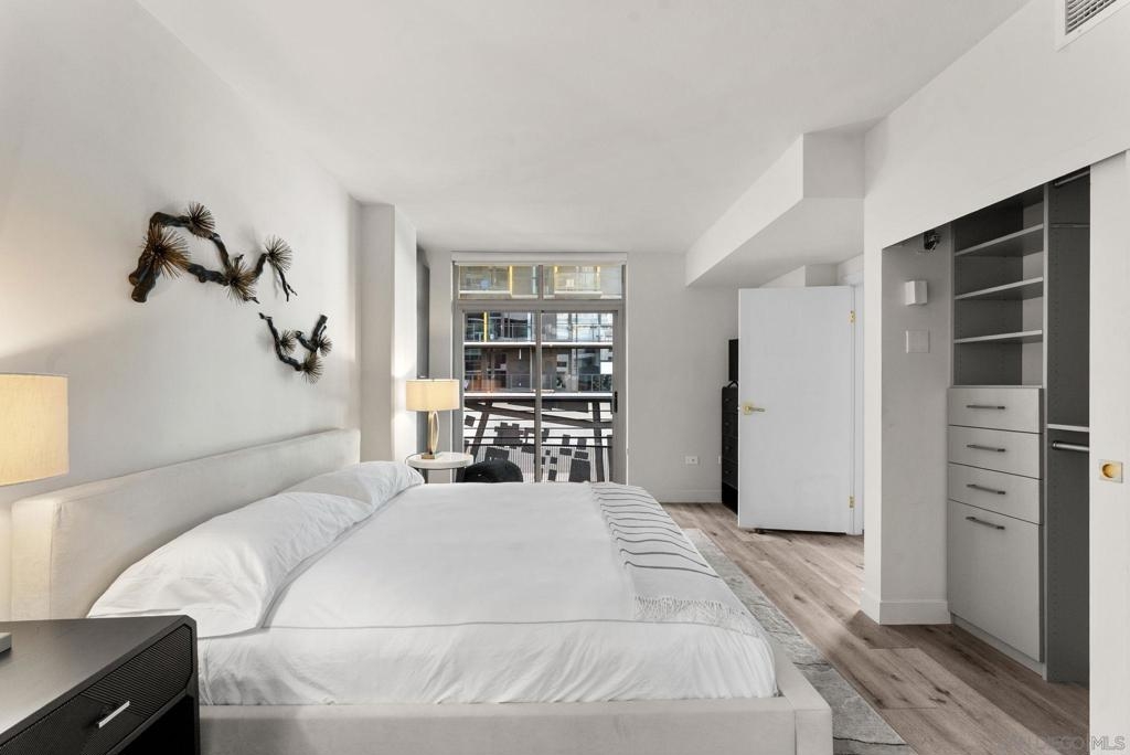 Most updated 1 bedroom in AcquaVista! Fully Renovated Little Italy Condo with Designer Finishes, Strong Rental Potential & Resort-Style Amenities. Live in the heart of vibrant Little Italy steps to the famous Farmers Market, transit, 100+ restaurants and more in this completely renovated, light-filled condo that blends modern design with effortless urban living. Every detail has been thoughtfully upgraded—from the sleek quartz kitchen with new stainless steel appliances to the warm, durable luxury vinyl plank flooring throughout. Floor to ceiling windows let in the San Diego sunshine. Charming Juliet balcony invites in fresh coastal air just blocks from the bay. The oversized bedroom is a true retreat, featuring a custom Home Decorators Collection closet system for elevated storage and style. The spa-inspired bathroom offers a walk-in shower, modern vanity, and anti-fog LED mirror—creating a clean, sophisticated feel. Enjoy everyday convenience with in-unit laundry and move-in-ready condition—no projects, no upgrades needed. 1 parking space included, additional parking available to rent. HOA has pool, hot tub, Amazon lockers, fire pits, Cabanas, grills, fitness center, 24/7 on site staff, and so much more! VA & FHA approved. Condo has cash flow investment potential & is ideal for bonus depreciation.