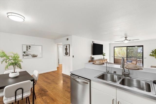 Spacious main floor Condo in Plaza Arizona - Prime Location & Unbeatable Value! Rarely does such a gem come to market! This unit comes with 2 parking spaces in a common garage (tandem) The bathrooms have been beautifully updated and the entire unit has fresh paint. This condo is the perfect place to call home. Located in a prime area, with freeway access around the corner its very easy to get around, additionally you'll be just a short distance from the vibrant neighborhoods of University Heights, Normal Heights, and North Park, where you can enjoy a variety of restaurants, cafes, shops, and more. This spacious home features 2 bedrooms and 2 bathrooms, balcony and ample storage and closet space throughout. In unit washer and dryer is conveniently included in the unit, making laundry a breeze. The kitchen has all stainless appliances and a sitting areas for bar stools adding to the free flow open floor plan. The community is well-maintained, offering a secure and peaceful environment. Enjoy the benefits of low HOA fees. Plus, the community is pet-friendly, so your furry friends are welcome! With its prime location, well-maintained community, and fantastic value, this condo will go fast!