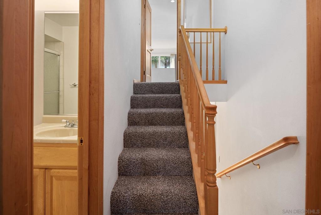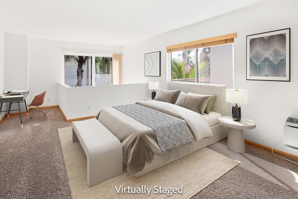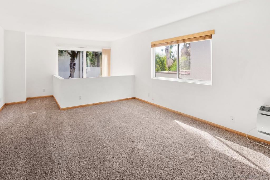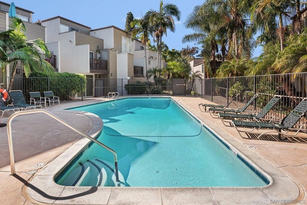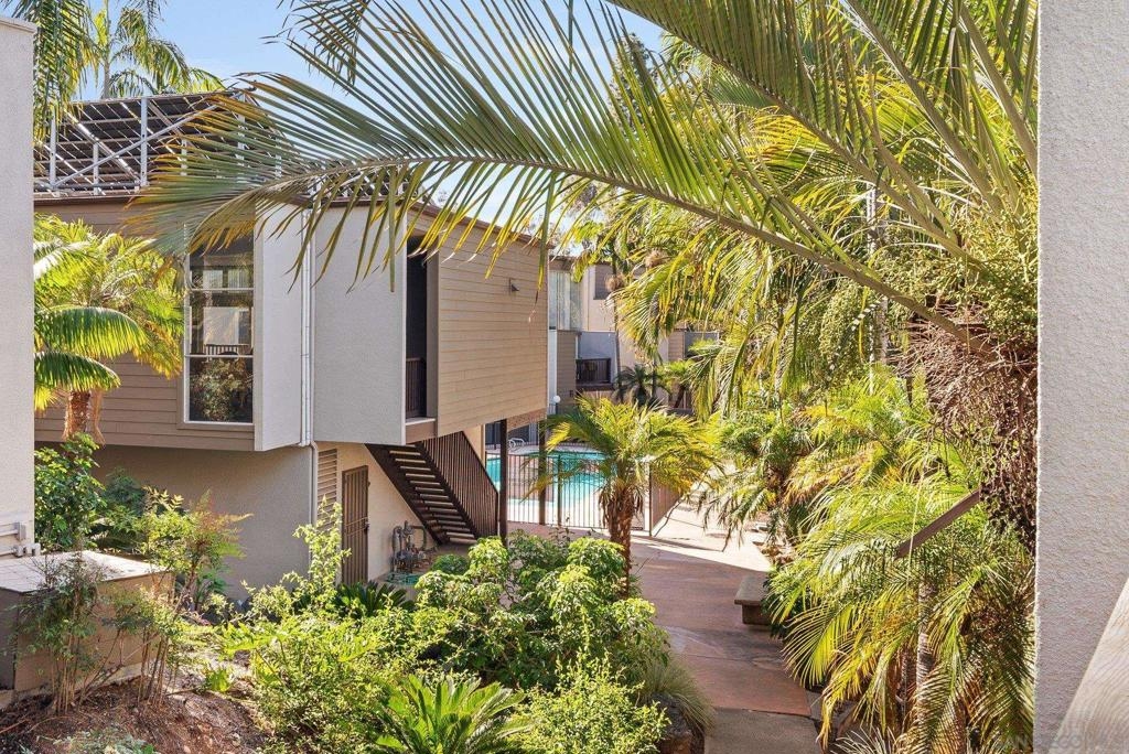 As though you’ve entered a tropical paradise. Quiet and inviting. Rarely on the market. Large bedrooms and full-sized bathrooms, this updated townhome offers new carpeting, maple hardwood flooring with custom woodworking throughout, only unit with a fireplace, open stairwell and loft area, huge wall of dual paned viewing windows, ice maker in fridge, tons of storage, covered assigned parking…GATED ENTRY! Clean and move in ready. Close to San Diego State University, shopping, transportation, entertainment. Just 15 minutes to the beach, downtown area of San Diego and Airport. Great central location. Welcome to the neighborhood.