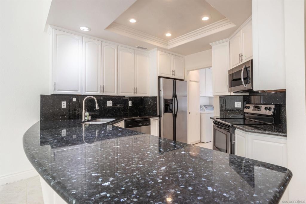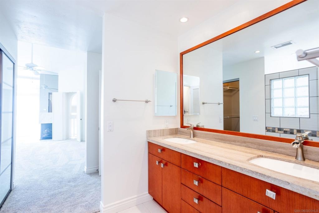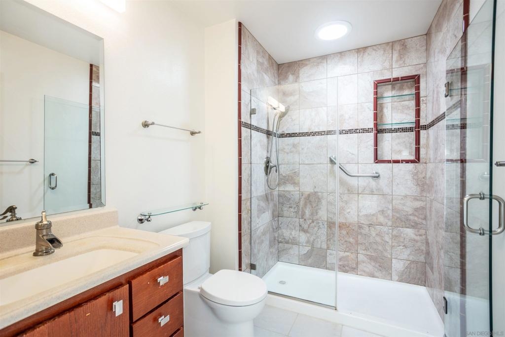 Welcome to the beautiful community of Villa Dominique. Located high on the hillside of Tierrasanta, where homeowners enjoy convenient local shopping, restaurants and access to good schools. This home has been responsibly cared for by the same professional service providers for years. Located on a quiet cul de sac street, the home features two large ensuite bedrooms. Other features include a large newer AC condenser, new carpeting, bright white tile floors and new garage door opener. The primary bedroom features its own fireplace, walk-in closet and terrace with lovely views to the West. Downstairs, the dining room, kitchen and family room all have direct access to the large private patio. The covered patio is perfect for alfresco dining or simply relaxing in the sun or moon light. The laundry and guest bathroom are located downstairs. Just a few steps up, the living room wraps around the fireplace. The living room also features a wet bar and another large terrace with views to the West. While feeling a world apart from the hustle & bustle, the home is conveniently located less than 17 miles away from downtown San Diego, the San Diego International Airport, Mission Bay and less than 7 miles from Costco, Ikea, Walmart and SnapDragon Stadium, all only minutes away. Welcome home!