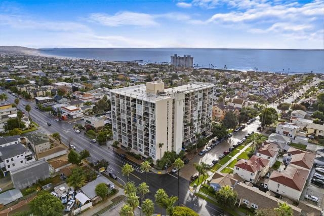 This elevated coastal retreat on the sixth floor of Pacific Tower delivers incredible sit-down views of the ocean, whitewater, Mission Bay, and the city skyline. One of the last high-rise residential buildings permitted in Pacific Beach before the 30-foot Prop D coastal height limit took effect, Pacific Tower offers a level of elevation, perspective, and natural light that simply can’t be replicated today. Completely reimagined with a $250K+ designer renovation in 2021, the home features a sleek Scavolini kitchen fitted with Miele appliances, thoughtful architectural lighting, artful tilework, and dramatic floor-to-ceiling Fleetwood windows that frame the coastline like a moving painting. The open, flowing layout creates a bright and welcoming environment that extends to a private patio—perfect for slow mornings, breezy afternoons, and unforgettable sunset evenings. The primary suite captures calming ocean vistas, while the second bedroom enjoys sweeping views across the bay toward downtown—an ideal setup for guests, a home office, or a tranquil retreat. Located just three blocks from the beach and moments from the restaurants, cafés, and energy of Cass Street, this residence blends convenience with serenity in one of North PB’s most desirable pockets. Pacific Tower itself offers a secure lobby and garage, pool, spa, fitness room, sauna, clubhouse, and common laundry—a full-amenity coastal high-rise lifestyle rarely found this close to the sand. Luxury coastal living, made simple.