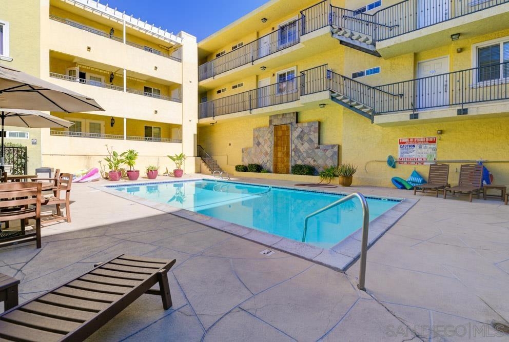 Welcome Home to your Breathtaking Top-Floor Retreat with Panoramic Canyon Views! Perched on the top floor, this freshly updated 1-bedroom, 1-bath condo offers unmatched tranquility and expansive views of the serene canyon below, providing a picturesque west facing backdrop to enjoy sunset. Step inside to discover a freshly painted interior adorned with brand-new recessed lighting and upgraded faucets and fixtures, creating a clean and contemporary ambiance. The thoughtfully designed open layout maximizes natural light and seamlessly connects the living, dining, and kitchen areas. The private balcony is a perfect oasis to unwind, dine al fresco, or simply take in the stunning scenery. The unit comes complete with modern conveniences and boasts in-unit laundry, assigned parking space, plus your very own large storage room literal steps from your door. Enjoy peace of mind in this gated community with low HOA fees that grant access to premium amenities such as a sparkling pool, relaxing spa, and a fitness center. Perfectly situated just a mile from SDSU, this home combines convenience and comfort with easy access to shopping, dining, entertainment, and major freeways. Whether you’re looking for a peaceful retreat or a vibrant investment opportunity, this condo offers the best of both worlds. Why settle for less when you can enjoy unparalleled views, a prime location, and tasteful updates that set this unit apart from the rest? Come see this property before it's gone!