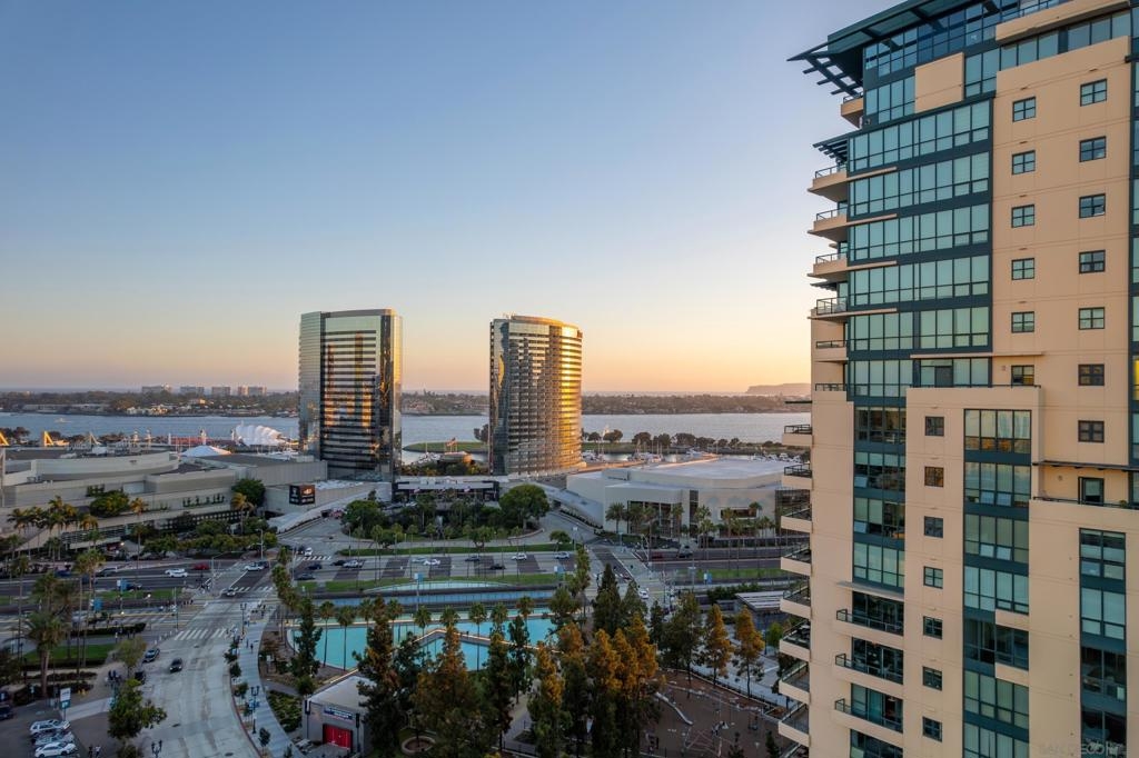 Spacious & bright corner unit with incredible panoramic views of downtown from every window! Located in the heart of the Marina District, this chic condo boasts floor-to-ceiling windows, a well-designed layout to include a versatile den with access to the balcony, perfect for a home office, fitness area, or a creative studio. The stone-surround gas fireplace sets the mood for romance while the open kitchen boasts stainless steel appliances, crisp white cabinetry, and granite counters. The primary bedroom features a large walk-in closet, blackout shades, access to the patio, and an ensuite bath with a shower/tub combo and plenty of cabinet storage. Additional features include a second bathroom with a walk-in shower and an in-unit laundry closet large enough to accommodate a full-sized washer and dryer! Upgrades include premium light fixtures, ceiling fans, blackout blinds, new modern doors and fresh paint throughout. Enjoy beautiful sunset views of Downtown from your large private patio. Horizon residents enjoy year-round socials for the entire community. Resident amenities include a gym, pool, spa, conference room, lounge, remodeled lobbies and some common areas, storage unit, EV chargers, guest parking, and 24-hour gated security. Ideally situated just steps to The Rady Shell and Seaport Village, adjacent to an off-leash dog park, with a short stroll to a Padres games and concerts at Petco Park. You’re also moments to Little Italy, the Gaslamp Quarter and San Diego’s incredible calendar of events. Horizon residents enjoy year-round socials for the entire community. Resident amenities include a gym, pool, spa, conference room, lounge, remodeled lobbies and some common areas, storage unit, EV chargers, guest parking, and 24-hour gated security. Ideally situated just steps to The Rady Shell and Seaport Village, adjacent to an off-leash dog park, with a short stroll to a Padres games and concerts at Petco Park. You’re also moments to Little Italy, the Gaslamp Quarter and San Diego’s incredible calendar of events.