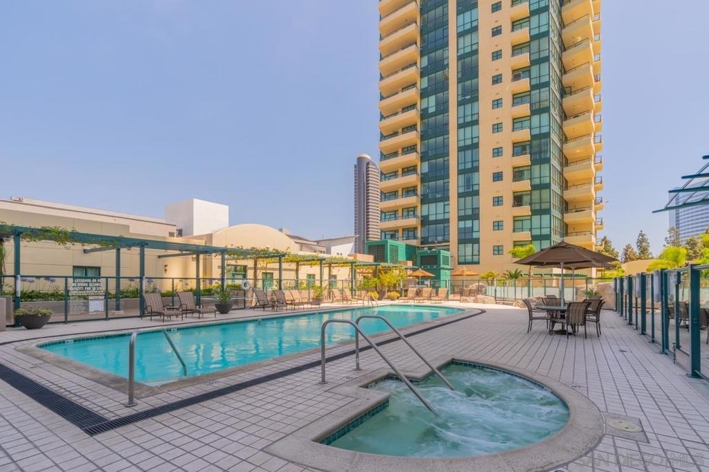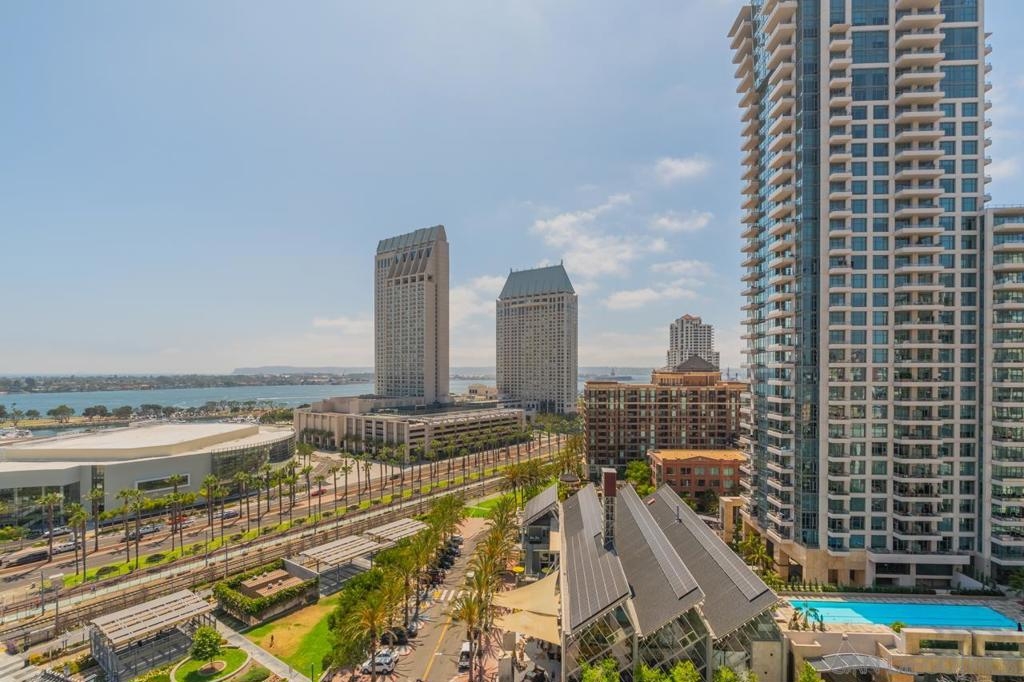 Welcome to Downtown San Diego’s Marina District, an upscale neighborhood ideally located between Seaport Village and the Gaslamp Quarter. This beautifully Horizons residence offers elevated city living with stunning west and south-facing water and skyline views, abundant natural light, and a peaceful sense of privacy above the energy of downtown. The spacious 2-bedroom, 2-bath is designed for both comfort and style. The open-concept living, dining, and kitchen areas flow seamlessly, creating a functional yet inviting environment. The primary suite enjoys westerly views, spacious bath and a walk-in closet. A versatile den, generous patio, and comfortable guest bedroom add flexibility and privacy. Two deeded parking spaces and over 10 guest parking spaces in the building for guests. Horizons offers resort-style amenities, curated resident activities, 24-hour security and concierge services — delivering a full-service luxury lifestyle in one of downtown’s most established communities.