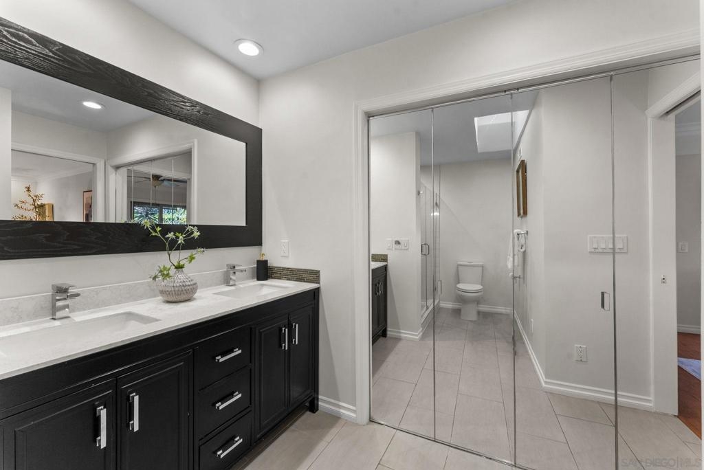 Truly one of San Diego’s best-kept secrets. Tucked within a gated, 38-acre hillside community in the foothills of Kensington, Kensington Park Villas offers a private, park-like setting that feels worlds away, yet remains centrally located. This fully turnkey residence has been thoughtfully updated throughout, featuring hard-surface flooring, fresh interior paint, and upgraded windows and doors. The living room is centered around a tiled fireplace, creating an inviting space for relaxing or entertaining. French doors open to a private patio surrounded by lush greenery, ideal for morning coffee or evening unwinding. The remodeled kitchen showcases modern cabinetry, tile flooring, and stone countertops, seamlessly flowing into the dining room. Dual primary suites offer multi-function living, separated by conveniently located laundry area with storage. Both primary suites feature updated bathrooms with custom tiled showers. Additional highlights include custom shutters throughout, central AC, ample storage, tankless water heater, detached one-car garage, and a private balcony. Set among mature trees, the community features 2 pools, 2 spas, a clubhouse, and just 145 residences with both gated vehicle access and pedestrian entry directly into Kensington. Enjoy close proximity to neighborhood shops, dining, and convenient access to I-8, I-15, I-805, and Mission Valley.