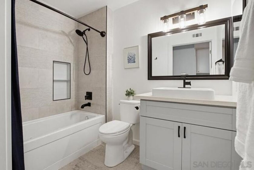 Discover one of the largest townhome floor plans in Tierrasanta. This turnkey 4 bedroom, 2.5 bath home offers 2,110 sq ft and is the lowest price per square foot in all of 92124. Flexible floor plan includes an oversized bedroom ideal for use as a bonus room, additional living space, or home office. The updated kitchen features quartz countertops, stainless steel appliances, recessed lighting, white shaker cabinetry, and bar seating. Living area includes luxury vinyl plank flooring and large windows providing natural light. Bathrooms have been fully updated with modern finishes. Additional upgrades include dual pane windows and HVAC system replaced within the last few years. The primary suite offers private balcony access and an en-suite bathroom. Enclosed patio off the kitchen creates indoor outdoor flow with space for seating, dining, or entertaining. The home offers a two car attached garage plus nearby guest and street parking. Located in the Villa Monterey community with amenities including 3 pools, tennis courts, basketball, clubhouse, walking trails, and RV parking. Close to Mission Trails Regional Park, Villa Monserate Park, shopping, dining, highly rated schools, and easy freeway access.
