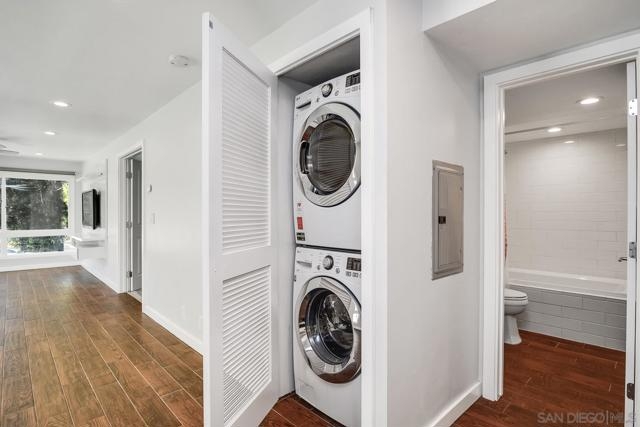 ***CORNER UNIT VIEWS INTO BALBOA PARK*** Very rare completely remodeled corner unit at Balboa Park. 2 bed 2 full bath condo with 2 car underground gated parking spots and extra storage. In unit laundry. Finishes include new windows, hard flooring, marble counters, butcher block kitchen island, custom white cabinetry, stainless steel appliances and new bathrooms. The condo is situated on Hawthorn and 6th Ave and the interior of the unit faces southeast directly into the park which allows for a nice greenbelt view but limits visibility inside the unit giving the interior a lot of light filled privacy. Parking is off street, gated, and in two separate assigned spots that are not tandem. Each parking space includes a small storage space for the condo. Walking distance to all of the amenities in Bankers Hill, close by downtown. Ideal location and rarely available.