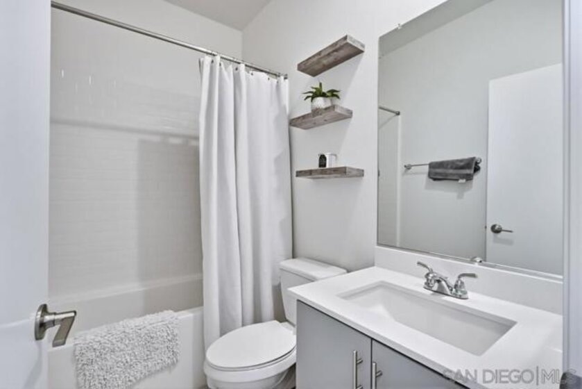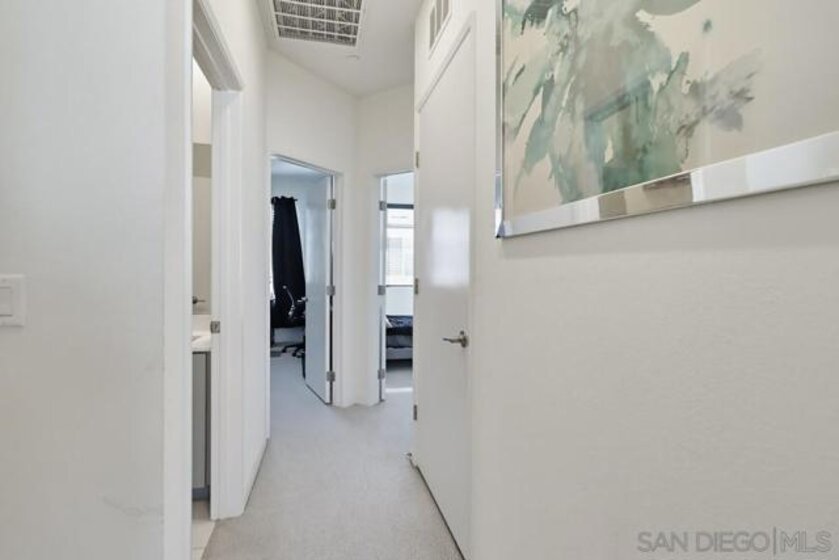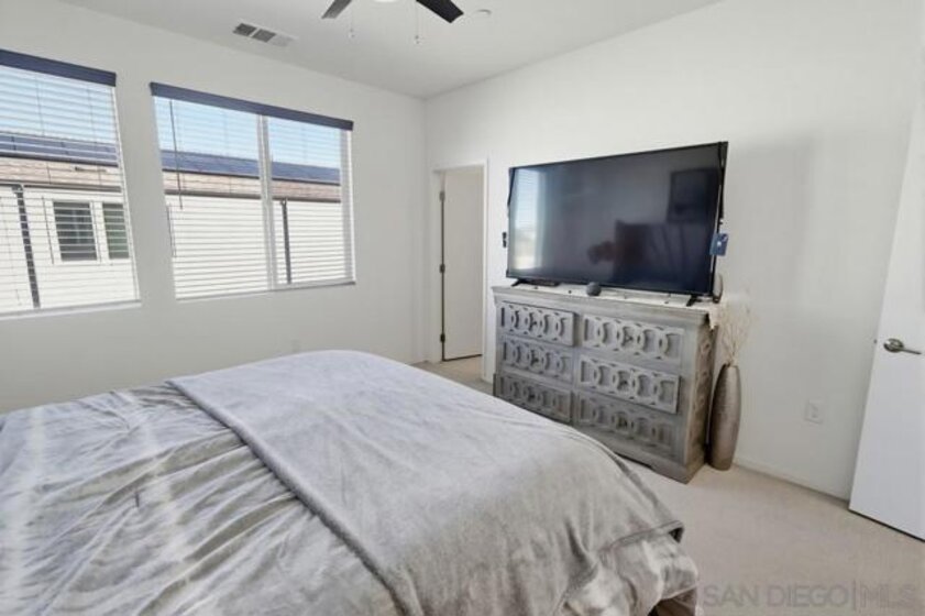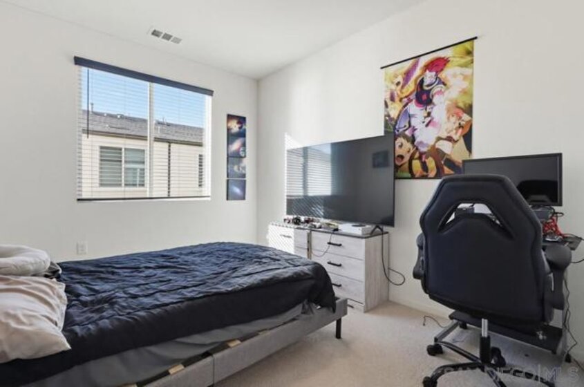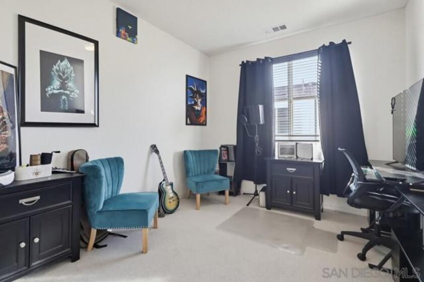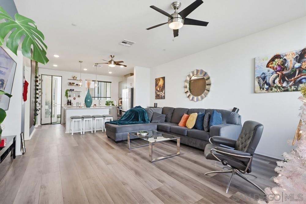 Welcome to this modern 3-story residence built just two years ago, offering 3 bedrooms, 2.5 bathrooms, and 1,703 sq ft of light-filled living in the La Brisa community of Otay Mesa. The entry level features a versatile flex space ideal for a home office or workout area, along with direct access to the attached 2-car garage. The main living floor is designed for everyday comfort and entertaining, showcasing durable LVP flooring and a sleek kitchen complete with quartz countertops, soft-close cabinetry, a gas range, and a spacious walk-in pantry. Upstairs, all bedrooms are thoughtfully located on one level, including a convenient full-size laundry closet. This newer community offers low HOA fees and the added benefit of owned solar. Ideally situated near parks, shopping, schools, and major freeways, La Brisa delivers a connected and convenient San Diego lifestyle. Move-in ready and well maintained, this home at Seacliff Place blends modern design with practical living.
