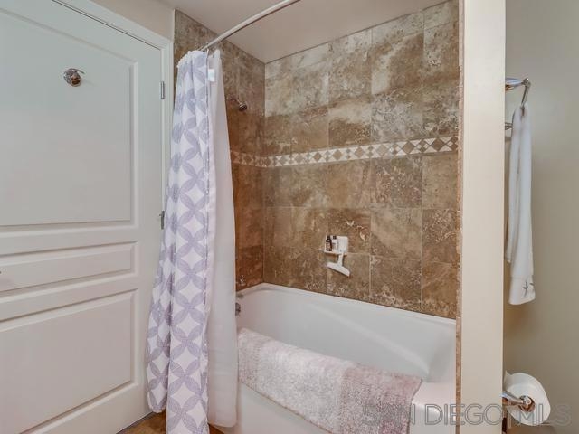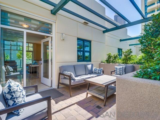 Ideal split bedroom floor plan, perfectly positioned in center of Marina District. Residence located on the same level as pool/spa w/ no one above you, only one neighbor to the side. Enjoy interior courtyard that features waterfalls & tropical landscaping for a relaxing resort-like feel. Take in city atmosphere on either of 2 patios, 1 large enough to entertain a group of 8. Travertine floors throughout, plus 1 parking space & 12 guest spaces. Best of downtown at your door-step: Petco Park, Gaslamp Quarter, Seaport Village, Little Italy, Bay. Ideal split bedroom floor plan, perfectly positioned in the center of the Marina District. Residence is located on the same level as pool/spa and interior courtyard that features waterfalls and tropical landscaping for a relaxing resort-like feel. Take in the city atmosphere on either of your 2 patios, 1 being large enough to entertain. Distinctive Travertine floors throughout, plus 1 parking space and there is an abundance of guest parking (12 guest spaces)! The best of downtown at your door-step: Petco Park, Gaslamp Quarter, Seaport Village, Little Italy, & Bay. Pool, Spa were recently re-plastered and new pool decking was installed.