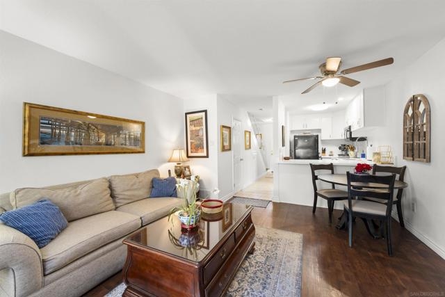 Beautiful Upgraded 2 Bedroom End-Unit Townhome with Private Patio! Welcome to this charming 2 bedroom, 1.5 bath end-unit townhome, ideally located in a well-maintained community. This light-filled home features a spacious layout with hard surface flooring throughout, an upgraded kitchen with modern finishes, and a large private enclosed patio—perfect for outdoor dining and relaxing. Enjoy the convenience of an in-unit laundry room with space for a full-size washer and dryer. Upstairs, you'll find two comfortable bedrooms and a full bath, with a guest half bath downstairs. The community offers a sparkling pool, relaxing spa, and a clubhouse for your enjoyment. Located close to shopping, restaurants, and public transportation, this home also includes one assigned carport parking space. Don’t miss this opportunity to own an upgraded townhome in a desirable location!