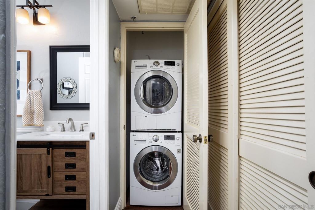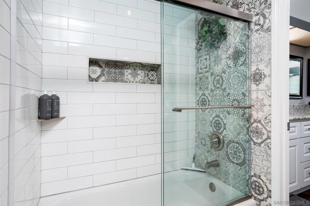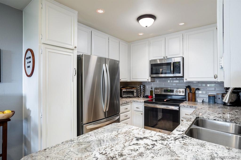 Wonderfully Remodeled home in a very quiet section of Presidio Place. Over $40,000 in upgrades & improvements 4 years ago. This home offers Luxury Vinyl flooring in the living room, Arizona Tile flooring in kitchen & baths, granite countertops, newer appliances & washer/dryer (yes, they convey) with upgraded toilets and matching pedestal sinks. Total privacy with shutters, and custom shutters on patio door as well. The full bath is superbly done and tub & shower enclosure is a thing of beauty. This home is turnkey and all you need to do is move in and enjoy the unit and everything the complex has to offer. This unit has a premium parking spot, right in front of elevator. Located West of Fashion Valley, close to USD, shopping, beaches, bay, bike trails, jogging paths, Trolley Station, Old Town, Bay Park... Just too many offerings to mention it all here. What are you waiting for? Come and look, it'll be worth your time! This complex offers pools, Conference Room, walking paths, pond, open space, Tennis Courts and plenty of quiet and security.