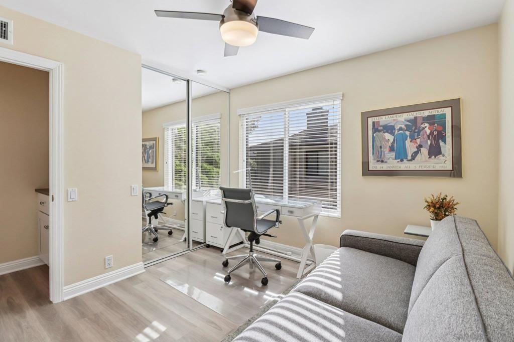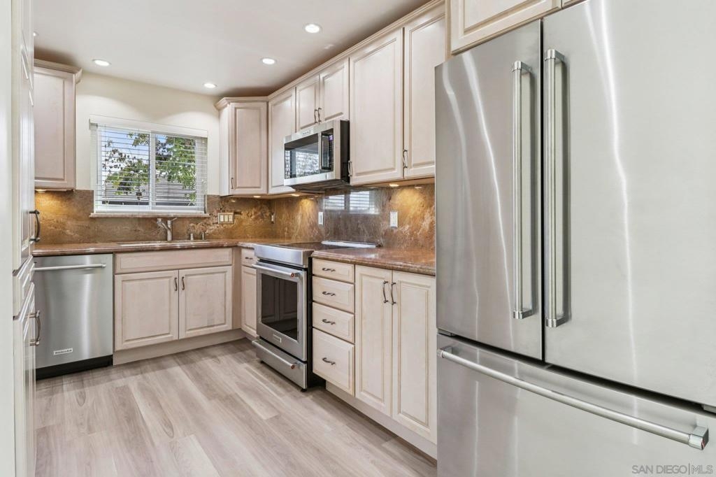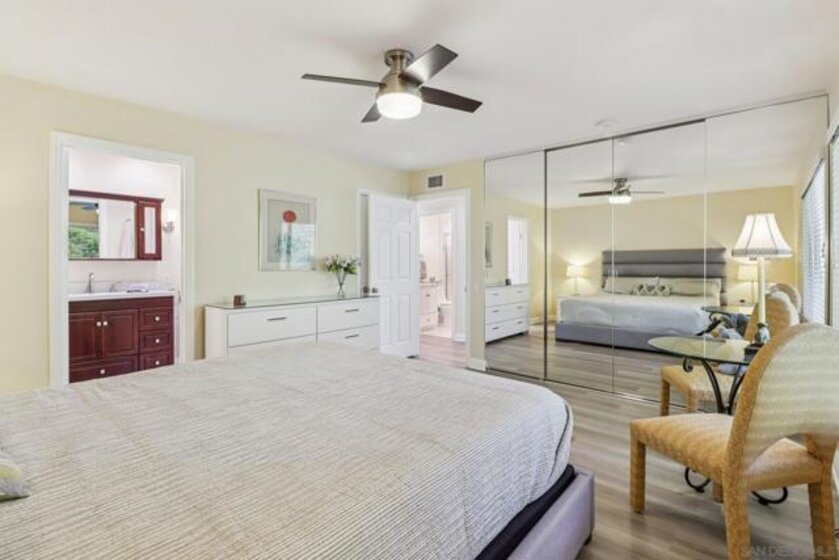 Comfort, style, and location combine in this beautifully upgraded 2 bed/2 bath home in the desirable Park Place Estates. Thoughtfully remodeled throughout, this turnkey residence offers modern living with timeless appeal. The chef’s kitchen is a standout, featuring custom cabinetry, granite countertops, stainless steel appliances, and an induction range—perfect for everyday living and entertaining. The spacious primary suite provides a relaxing retreat with a spa-inspired bath, jetted tub, and custom closet system. Additional upgrades include luxury vinyl plank flooring, a high-efficiency HVAC system, and new Milgard windows for year-round comfort and energy efficiency. Ideally located directly across from the highly anticipated Riverwalk development, residents will enjoy future parks, trails, shopping, dining, and vibrant outdoor spaces just steps away. Walk to Fashion Valley, nearby transit, and enjoy effortless access to all that San Diego has to offer. Move-in ready and impeccably maintained—this is a rare opportunity to own a truly exceptional home in a prime location. Features: 1. All new appliances 2. Induction stove top 3. Top of the line LG washer/dryer 4. New Milgard windows 5. Luxury Plank Vinyl Flooring 6. Dual sinks in primary bathroom 7. Jetted tub in primary bathroom 8. Bidet toilet seat 9. Custom closet organization systems 10. Alarm System with motion detection 11. Gas fireplace, new gas line and logs 12. New lighting fixtures 13. New remote controlled blinds in Living Room 14. Private balcony 15. Saltillo tile patio 16. 1 car attached garage 17. 1 assigned parking space 18. Built in garage shelving/storage 19. New hardware/locks on all doors 20. New front door 21. Community amenities – pool, spa, clubhouse / BBQ areas 22. Hillside and neighborhood views 23. Park like common areas (aesthetic, relaxation) 24. Pet friendly (important for pet owners) 25. Cul de Sac Quiet/private location in complex 26. Across from new Riverwalk Development