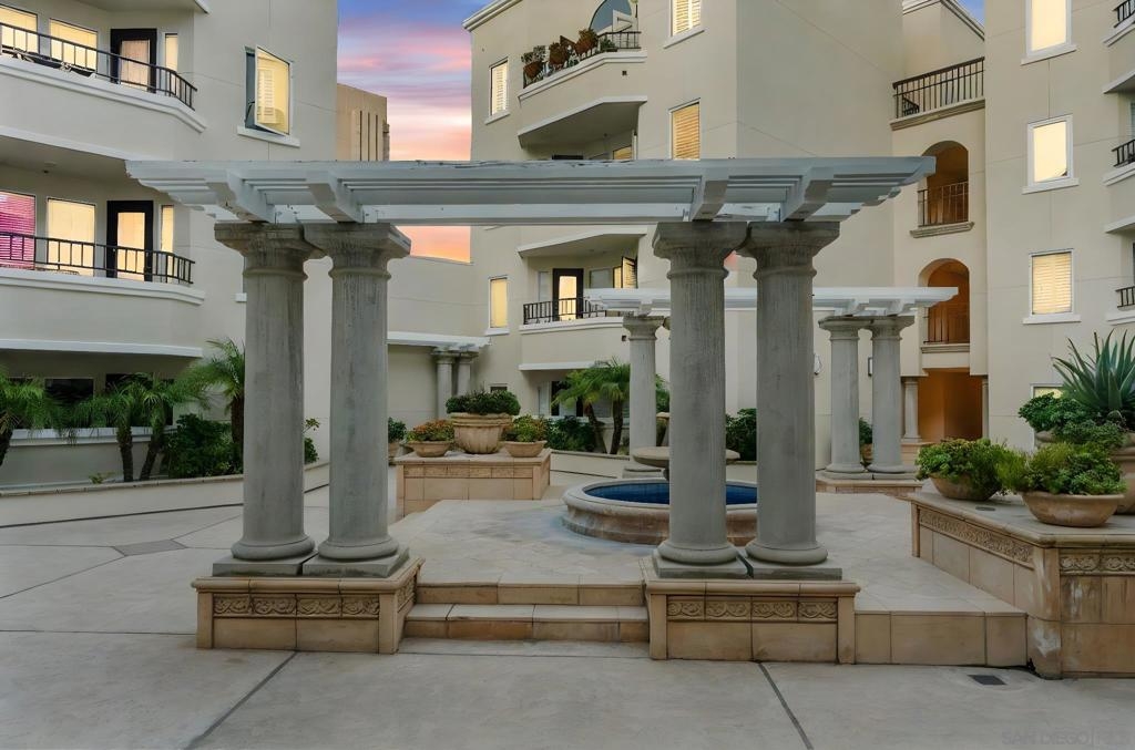 Welcome to Unit 317 at Columbia Place! Your peaceful downtown retreat in the heart of the Marina District! This spacious 1 bed, 1 bath condo offers the rare blend of privacy, walkability, and style. Enjoy dual access to a private balcony from both the living room and the primary bedroom, perfect for sipping coffee while taking in city light views. Inside, you'll find wood flooring, stainless steel appliances, warm wood cabinetry, and a dedicated dining area, living room, and bar seating. The updated bathroom features quartz countertops and a beautiful stone shower. The oversized walk-in closet offers endless possibilities! Use it for storage, or convert it into a home office or nursery. The unit includes in-unit laundry, newer HVAC (2022), and one assigned parking space. Columbia Place is a gated community with on-site security, a gym, and a jacuzzi. Best of all, you're just steps to Seaport Village, the marina, Gaslamp, Pantoja Park, restaurants, shops, and more. All without the downtown noise. Whether you're looking for a smart investment, a weekend getaway, or your full-time home base, this one has it all. (some images have been enhanced-added plants & towels).