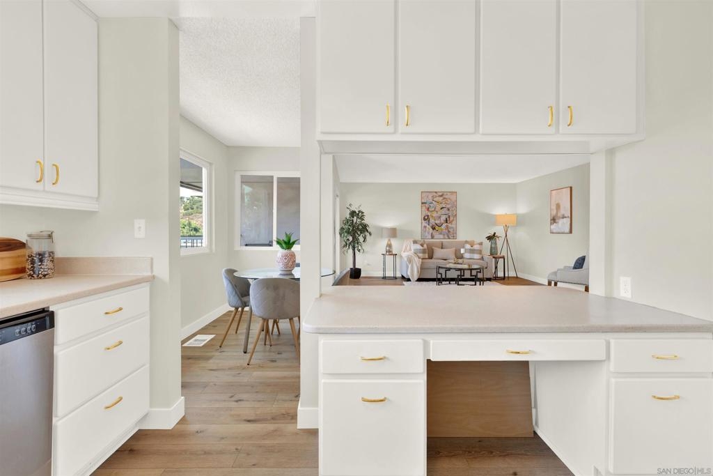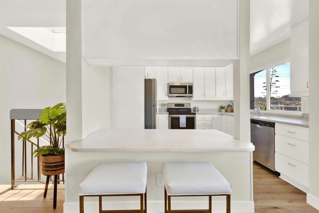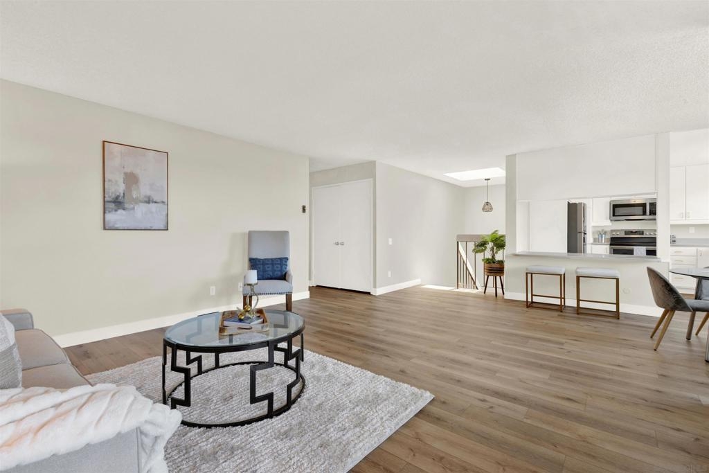 Nestled in the highly sought-after community of Friars Village, this recently updated 3 bed/2 bath view townhome is a must see! Staircase skylight, open floor plan, & a balcony off the living room bring in lots of natural light, & allow you to enjoy SW/Mission Bay views with your morning coffee, evening sunsets, & SeaWorld fireworks! New appliances, refreshed cabinets & ample storage in the kitchen, updates in both bathrooms. New vinyl plank flooring, fixtures, & hardware throughout, PLUS AC and double paned windows. Spacious primary bed/full bath has custom shutters that slide open to a quaint patio along the greenbelt, & a 2 car garage w/tons of room for your cars AND all your stuff, w/extra space in the easily accessible crawlspace. Enjoy the quiet location of this complex but still be close to all the action = USD, Fashion Valley, I8, I5, & the 163 freeways, & more! HOA Amenities include pool, spa, clubhouse, playground, ping pong games BBQ etc. Broker/Agent does not guarantee the accuracy of square footage, lot size, or other information concerning the condition or features of property provided by seller or obtained from public records or other sources & the buyer is advised to independently verify the accuracy of that information through personal inspections with appropriate professionals.