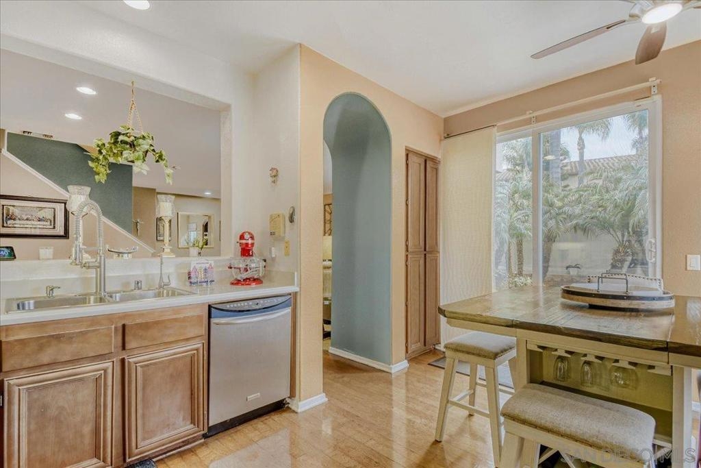 Welcome to 6373 Avenida De Las Vistas Unit 2, a rare corner end-unit offering privacy, space, and convenience. This well-appointed 3-bedroom, 2.5-bath home features approximately 1,695 sq ft of living space with a bright, open layout, cozy fireplace, and central A/C and heat. The kitchen is equipped with granite countertops and stainless steel appliances, ideal for everyday living and entertaining. Enjoy the benefits of an attached 2-car garage and a low HOA community with a pool. One of the home’s standout features is the rare backyard patio, enhanced with lush vegetation and low-maintenance turf, perfect for relaxing or hosting guests. Ideally located close to freeway access, the airport, shopping, dining, the amphitheater, and Sesame Place amusement park.