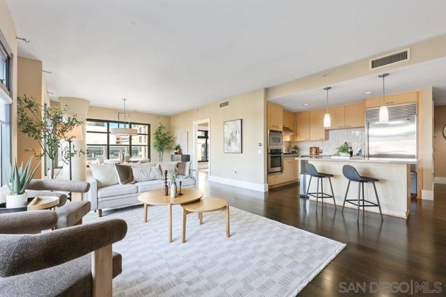Experience elevated urban living in Renaissance residences, with this turnkey home in the heart of Downtown San Diego’s prestigious Marina District. Chef’s kitchen features Sub-Zero & Viking appliances, Caesarstone surfaces, custom marble backsplash, and pendant lighting. The split floor plan, dual master suites offer walk-in closets with built-in organizers and upgraded bathrooms. The living area showcases expansive paneled windows that dramatically slide open, revealing city views with incredible air and cross winds. Highlights include, engineered wood floors, in-unit laundry and a bonus powder room. Renaissance will soon have a brand new “street level” lobby and new resort style amenities.