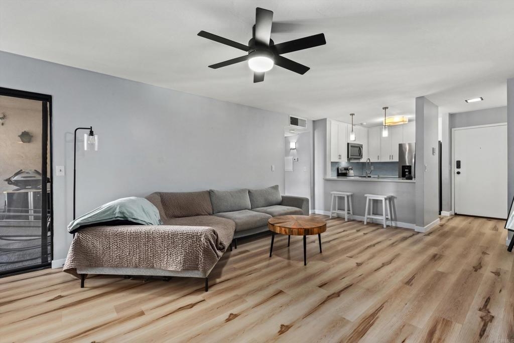 Welcome home to this beautifully remodeled 1-bedroom, 1-bath condo offering 644 square feet of stylish, low-maintenance living in the heart of Mission Valley. Perfect for a first-time home buyer, this well-located unit features peaceful views of the interior courtyard with a lovely pond and gazebo and is tucked away in a quiet area of the complex—away from nearby construction and Friars Road. The remodeled interior showcases luxury vinyl plank flooring, a cozy gas fireplace, and an updated kitchen with quartz countertops. The bathroom features tile in the shower, while the bedroom includes a walk-in closet for generous storage. An additional storage closet in the hallway near the kitchen adds even more everyday convenience. The AC unit was replaced in 2018, providing efficient, year-round comfort. This home includes two parking spaces and two separate storage areas, with all appliances conveying including the washer and dryer, making it truly move-in ready. Enjoy resort-style community amenities including an oversized pool, spa, exercise room, and sauna. The HOA covers cable, Wi-Fi, water and trash, helping keep monthly expenses predictable and stress-free—an ideal setup for first-time buyers. Located just steps from Fashion Valley Mall, with easy access to shopping, dining, transit, and major freeways, this condo offers an unbeatable combination of location, comfort, and value. A rare opportunity to stop renting and start building equity in one of San Diego’s most desirable neighborhoods. Call today to see this great home! VA approved complex.