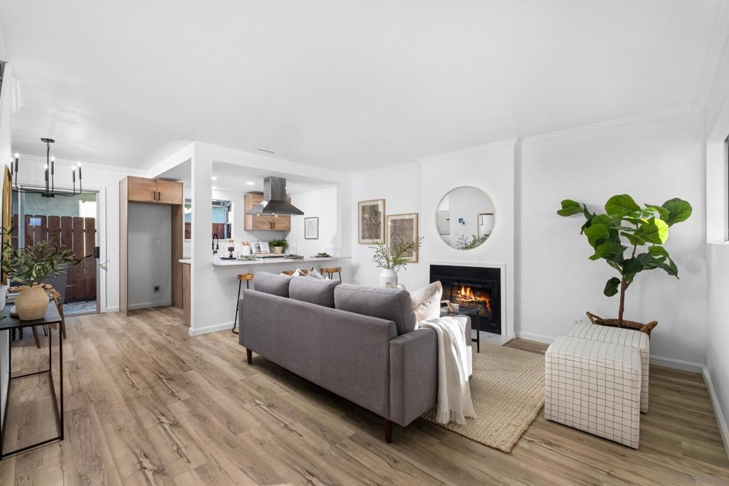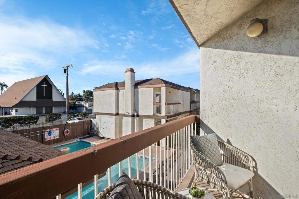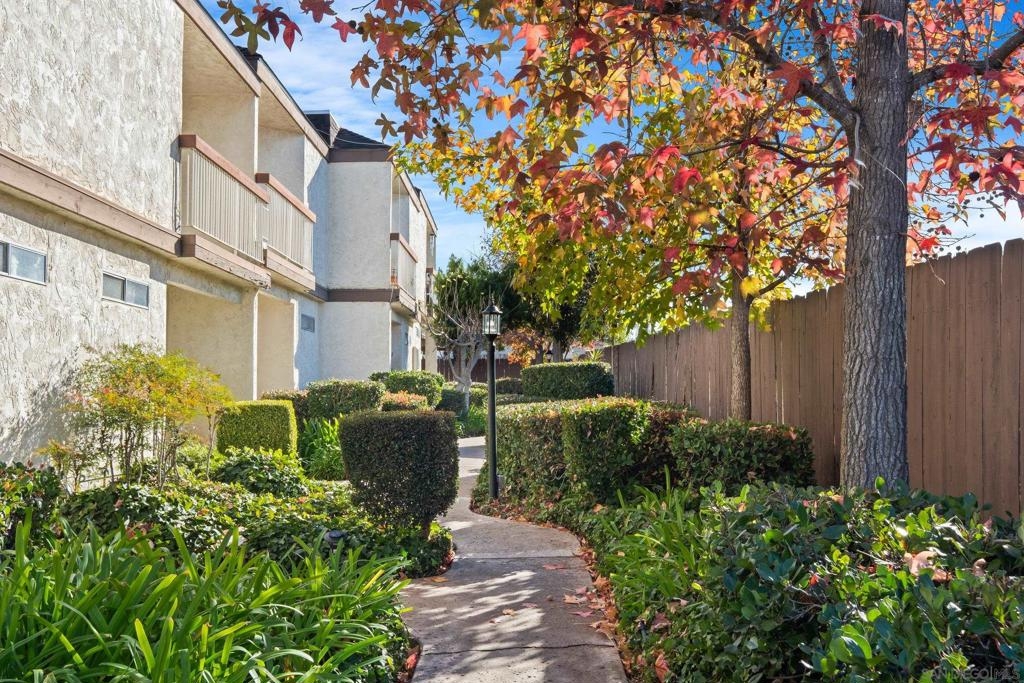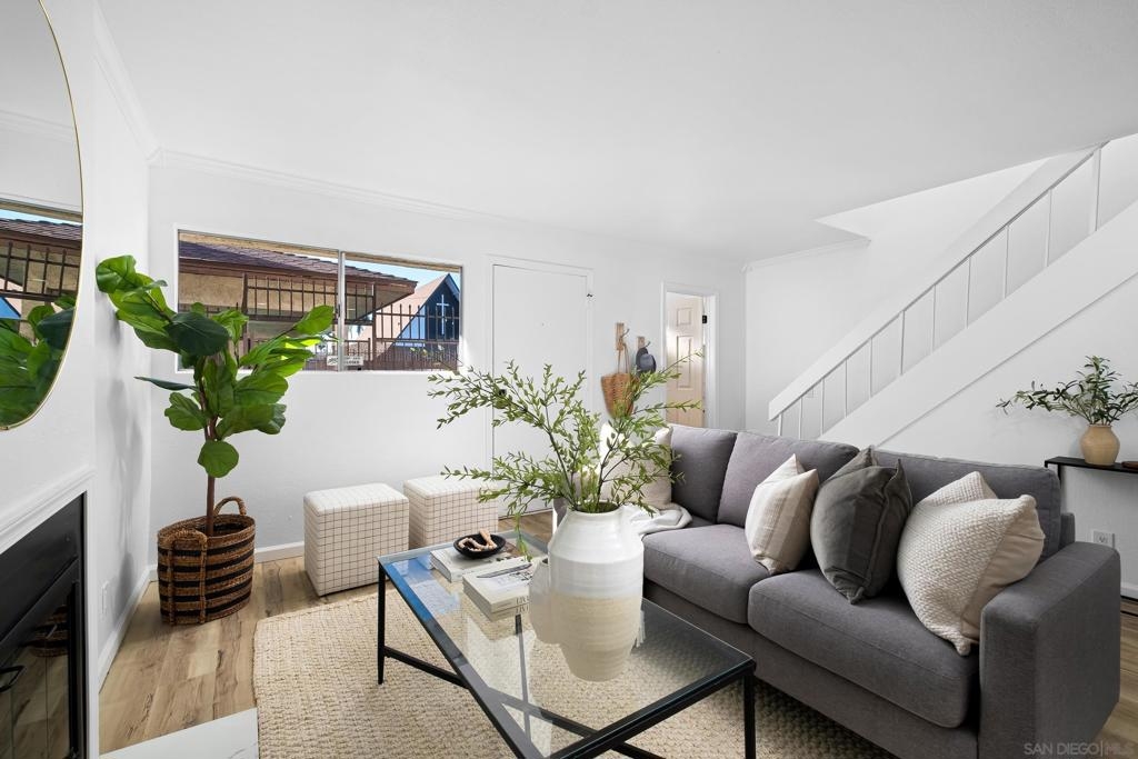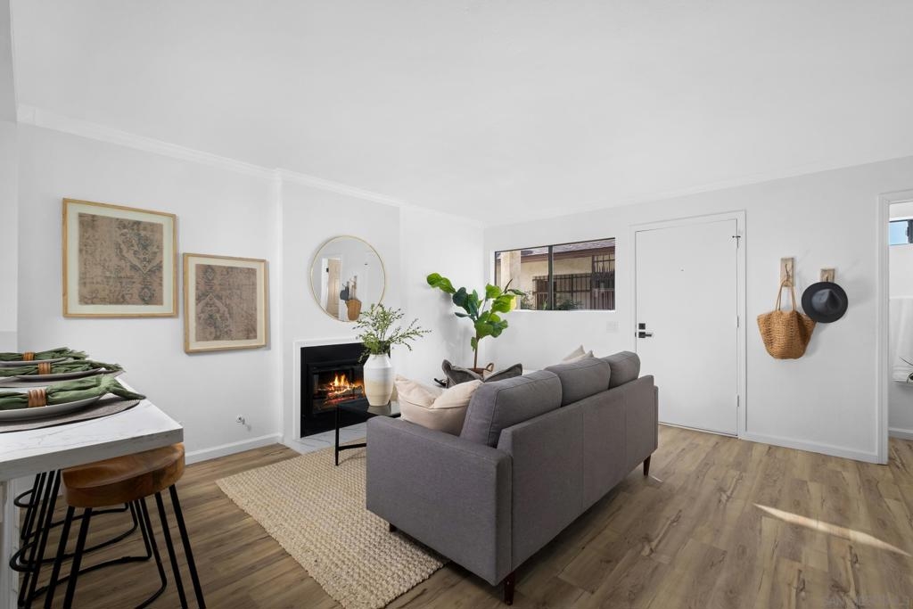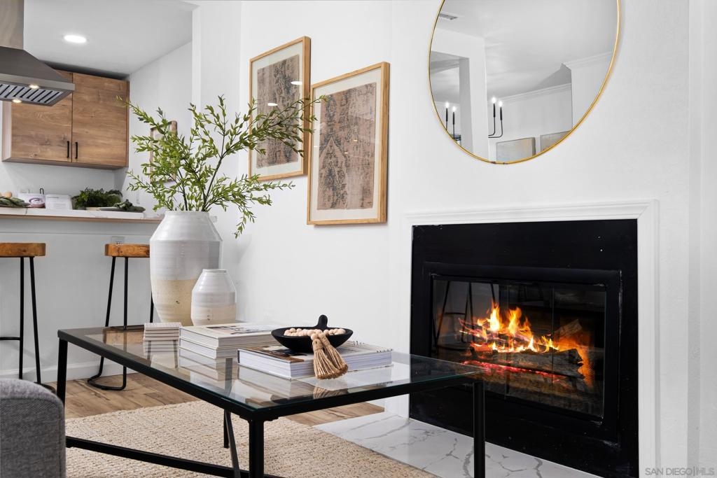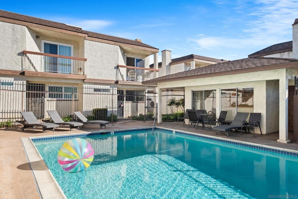 Two story 2-bedroom 1.5-bathroom end unit condo awaits its new owner! Upon entry you will find an open warm and inviting living room with a centralized fireplace. Step out onto the patio from the dining room and kitchen area, where the inside and outside flow seamlessly together. A half bathroom downstairs adds to the functionality of the space. Upstairs, you'll find two well-appointed bedrooms and a stylish bathroom, providing a comfortable and private retreat. The in-unit laundry adds an extra layer of convenience to your daily routine. Designer finishes bring comfort and style. Conveniently located next to the community pool and close to SDSU, freeway access, restaurants, shopping centers, and more!