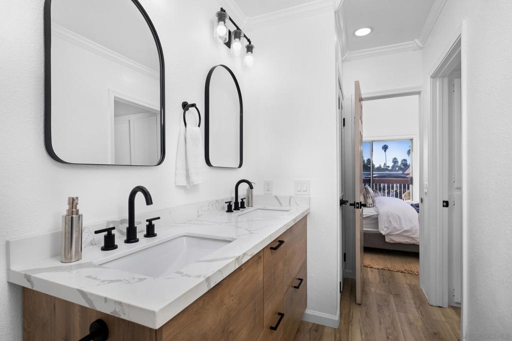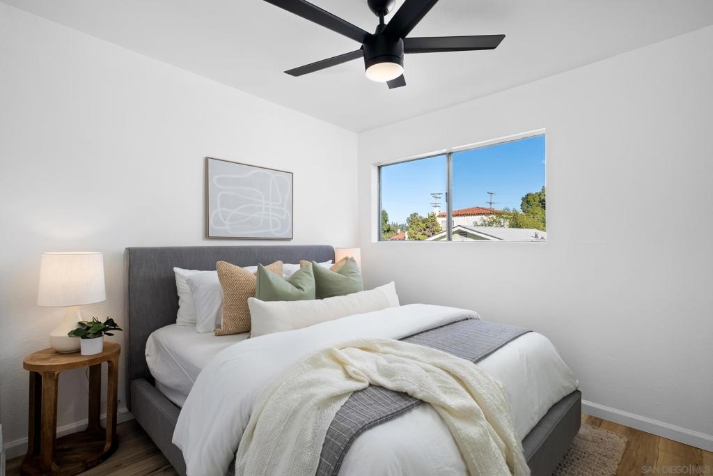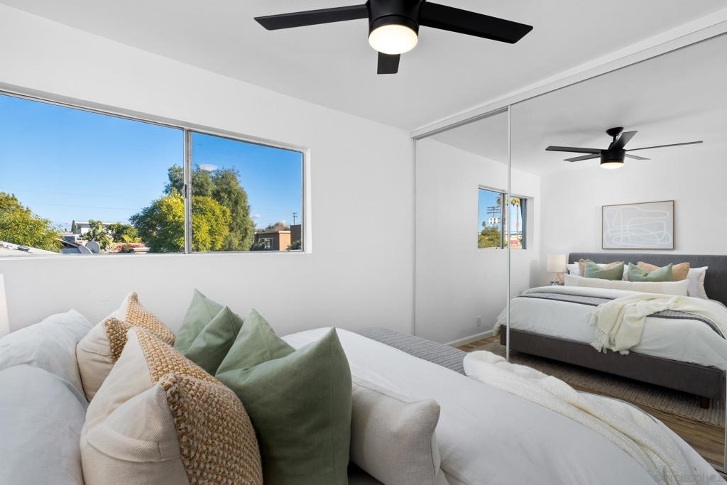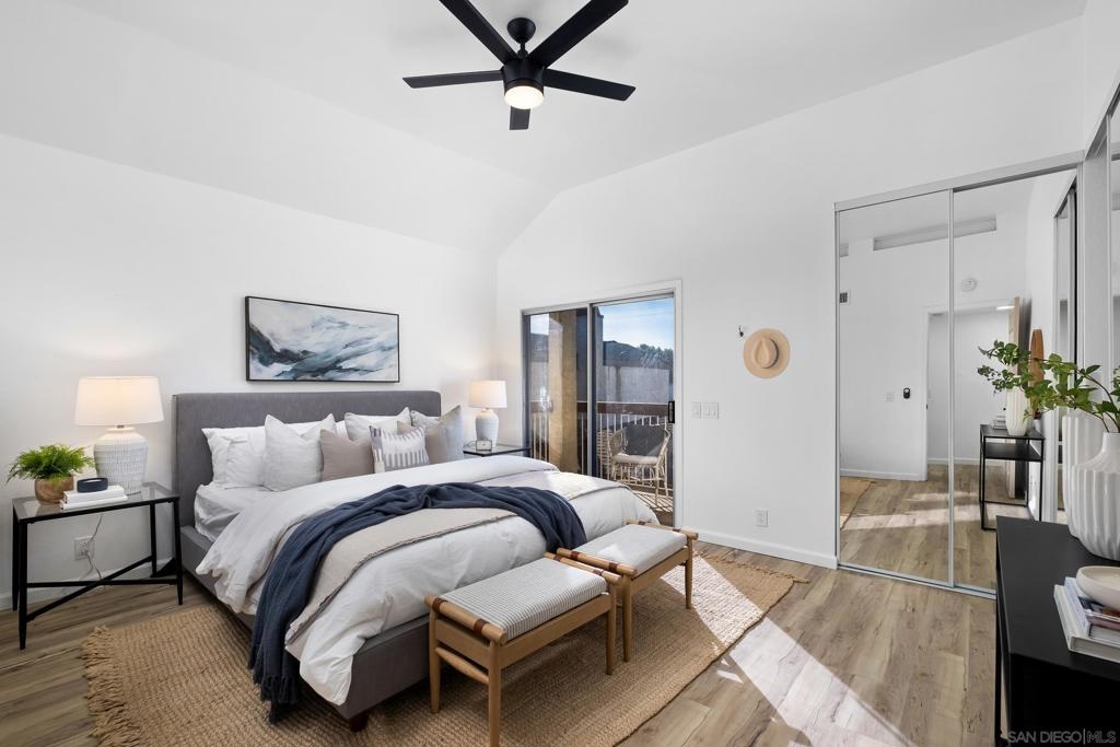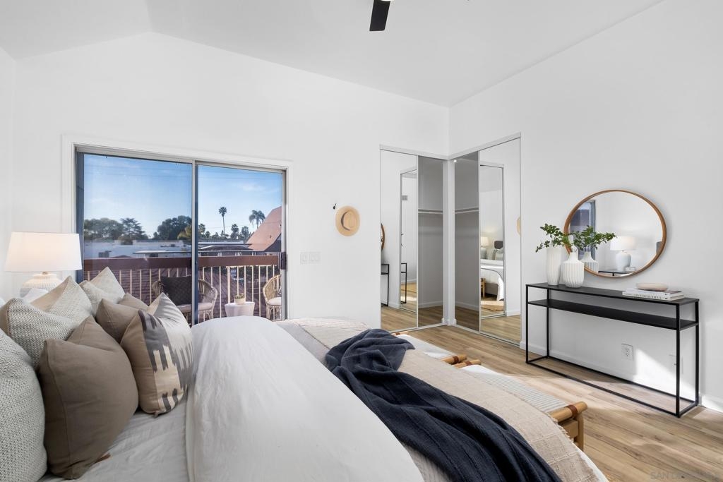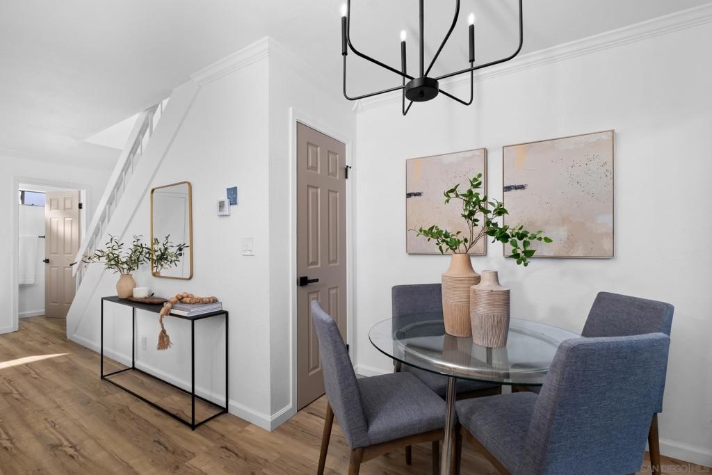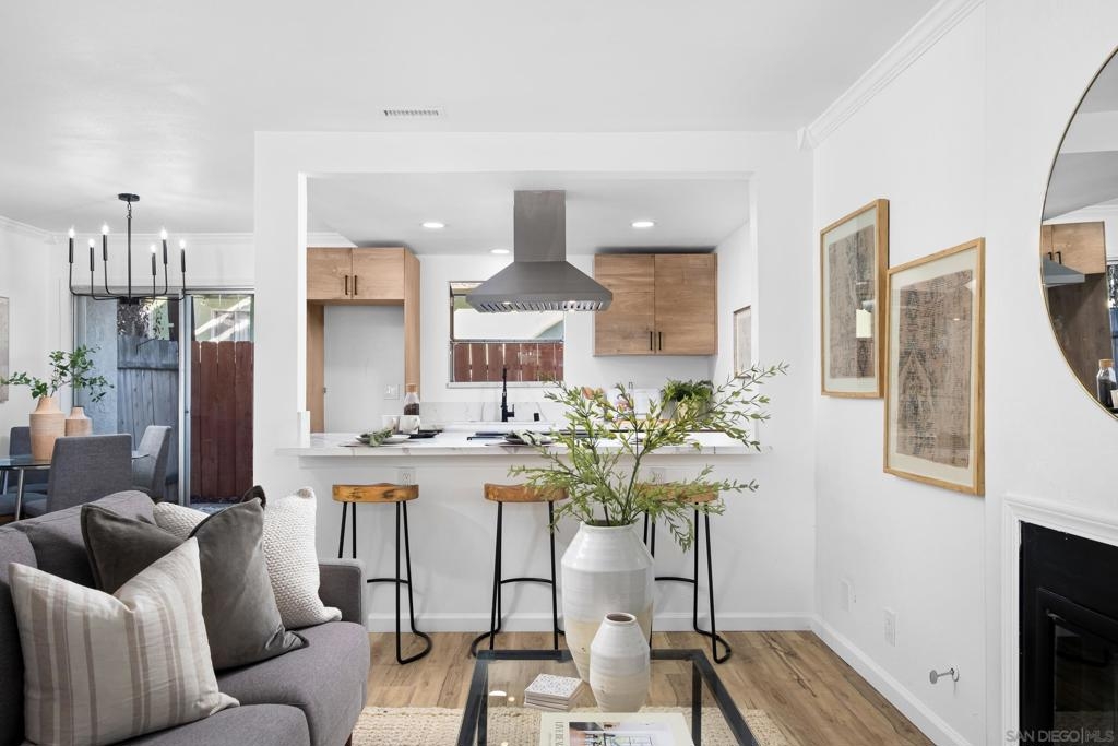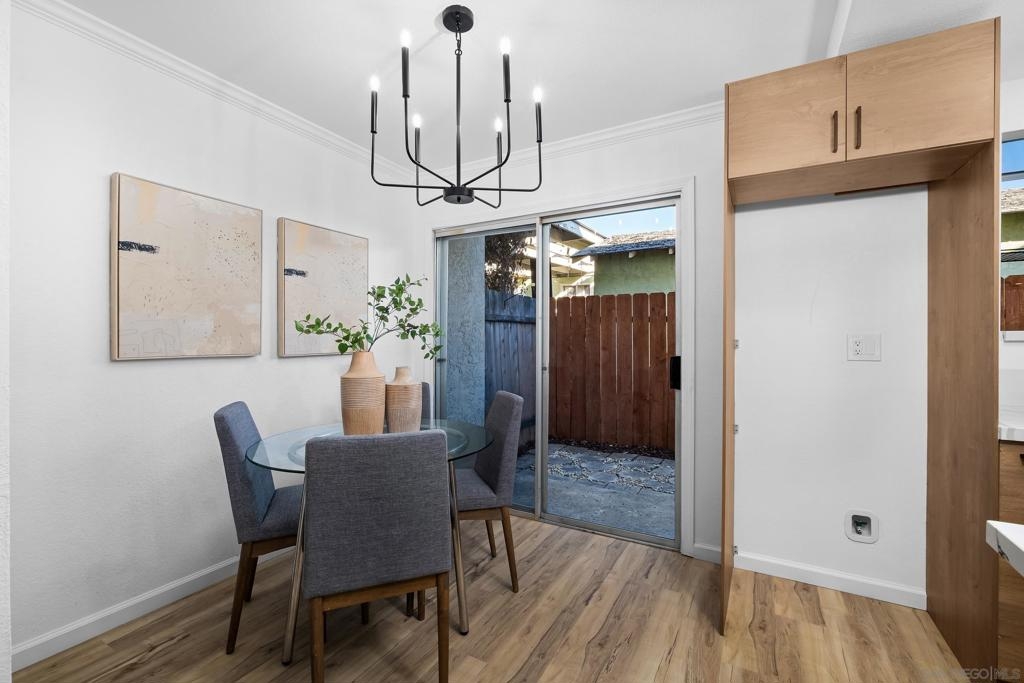 Two story 2-bedroom 1.5-bathroom end unit condo awaits its new owner! Upon entry you will find an open warm and inviting living room with a centralized fireplace. Step out onto the patio from the dining room and kitchen area, where the inside and outside flow seamlessly together. A half bathroom downstairs adds to the functionality of the space. Upstairs, you'll find two well-appointed bedrooms and a stylish bathroom, providing a comfortable and private retreat. The in-unit laundry adds an extra layer of convenience to your daily routine. Designer finishes bring comfort and style. Conveniently located next to the community pool and close to SDSU, freeway access, restaurants, shopping centers, and more!