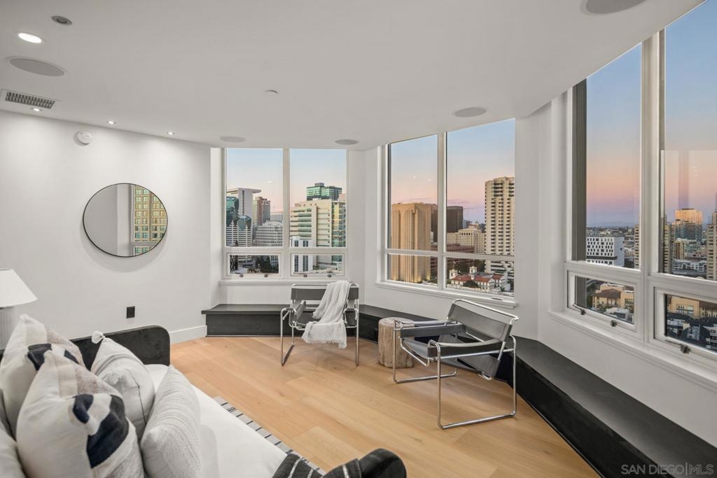 Perched on the 21st floor of Park Place, this home offers panoramic 270-degree views of the bay and city skyline, along with two private balconies ideal for entertaining. This home offers some of the most expansive views you can find in Downtown San Diego under $2m. Located in the Marina District near Seaport Village and the waterfront RaDD innovation campus, Park Place offers resort-style amenities including 24-hour lobby staff, a pool, gym, sauna, and more—perfect for those seeking upscale urban living with unmatched walkability. Welcome to Park Place, ideally located in the highly desirable Marina District of Downtown San Diego. Just outside your front door, you'll find the San Diego Bay, Seaport Village, and The Headquarters—all offering a dynamic mix of waterfront dining, boutique shopping, and outdoor entertainment. The surrounding area is buzzing with momentum thanks to transformative projects like IQHQ’s RaDD (Research and Development District), which is bringing millions of square feet of life science and office space along the waterfront. Residents enjoy easy access to the Gaslamp Quarter, Petco Park, and Little Italy, making this one of the most walkable and convenient neighborhoods in the city. Built in 2004 by Bosa Development, Park Place is a 30-story luxury community that blends contemporary design with a warm, welcoming atmosphere. Upon entering the building, residents are greeted by an elegant lobby featuring a grand piano and staffed by a 24-hour front desk team. Amenities include a resort-style pool and spa, a fully equipped gym, sauna and steam room, a residents’ lounge, and secure underground parking for both residents and guests.
