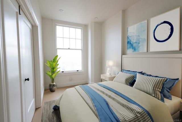 Unit has just been remodel and has fresh modern look! New vinyl flooring, baseboards, imperfect smooth texture walls, freshly painted, including kitchen cabinets! The one-bedroom, one-bath residence features soaring 9-foot windows that frame stunning views of the Balboa Park Tower. Beyond the elegant double-door entry, the bedroom offers a serene retreat and connects to a spacious, custom-designed walk-in closet. Comfort is enhanced by central heating and air conditioning, a Nest thermostat, and effortless elevator access. One convenient parking space is also included. Steeped in history, the iconic 1926 Spanish Colonial Revival El Cortez building delivers resort-style amenities within a welcoming, pet-friendly community known for its warm camaraderie. Residents enjoy a second-floor terrace with BBQ and lounge areas, a sparkling pool and spa, a fully equipped fitness center, secure bike storage, EV charging, underground parking, and attentive on-site management. Each floor provides community laundry; on the seventh level, only three residences share these facilities, ensuring convenience and privacy. Situated atop charming Cortez Hill, this home offers easy access to San Diego’s most beloved destinations — Balboa Park, Petco Park, Little Italy, the Gaslamp Quarter, Seaport Village, the harbor, and the airport — blending classic architecture with modern urban living. At El Cortez, you’re not just purchasing a home — you’re joining a living legacy. Discover elevated downtown living