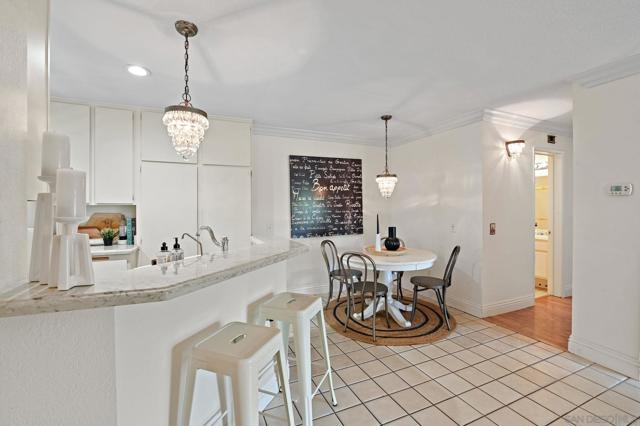 Charming condo in City Scene with fabulous location within the development - away from the street and powerlines. This condo has a sunny and large patio that expands use of San Diego's finest weather. The condo is thoughtfully designed to have separate bedrooms and baths which is perfect to accommodate guests or a roommate. Few condos at this price also offer indoor laundry, a fireplace, and a two car garage. The owners have installed laminate flooring, quartz kitchen countertops, upgraded kitchen faucets and lighting fixtures, modern fireplace surround, updated sliding doors, updated primary shower and the furnace and A/C have been recently replaced. The development is centrally located and is minutes to shopping, restaurants, beaches and downtown.