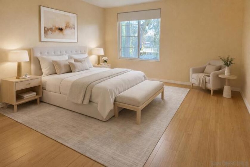 SAVE $$$ on this light fixer and you can add your personal touches to the finish before we complete the remodel and raise the price. Located in Canyon Park Villas, this bright upper 2-bedroom unit has a large loft space (use as bedroom, office, fitness room, ...) overlooking an open living room with vaulted ceilings and lots of windows. Each of the spacious bedrooms has its own attached bathroom. Bamboo flooring in bedrooms and living areas. Tile flooring in bathrooms. Custom wood cabinets in kitchen and bathrooms. Full size washer/dryer hookups located in closet off large, covered, private balcony. Two assigned parking spaces with additional visitor spaces available nearby. Great location in San Diego, less than 3 miles to Sorrento Valley, minutes to UTC, UCSD and all the great restaurants and shopping in Mira Mesa. The community provides many amenities including pool, spa, restrooms, basketball, sand volleyball, and more. Across the street is Lopez Ridge Park with lighted basketball, baseball, outdoor fitness equipment, meeting room, kids' playground, sports and crafts classes and much more. This is your chance to purchase this home and do the updating to your own liking. Perfect starter or investment home. VA-approved complex Parking spaces 355 (covered) and 371 (uncovered).