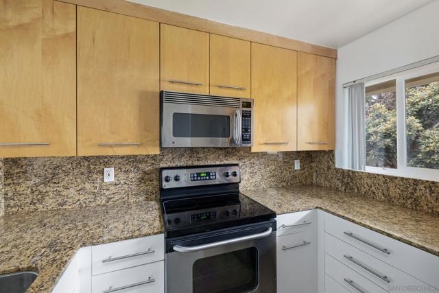 Ideally located in the heart of La Jolla Colony, this spacious home is just steps from shopping, dining, and the UCSD shuttle—perfect for students or first-time buyers. Features include tile plank flooring, an open living room leading to a private patio with views and storage, and a kitchen with granite counters and stainless appliances. The two bedrooms are set on opposite sides for added privacy, with new carpet and paint. The primary suite offers a walk-in closet with a barn door. Both bathrooms have granite counters and ample storage. Full-size washer/dryer included. Enjoy a front courtyard, greenbelt access out back, and nearby dog park. Community amenities include pools, spa, gym, and clubhouse.