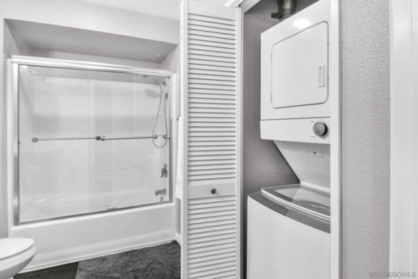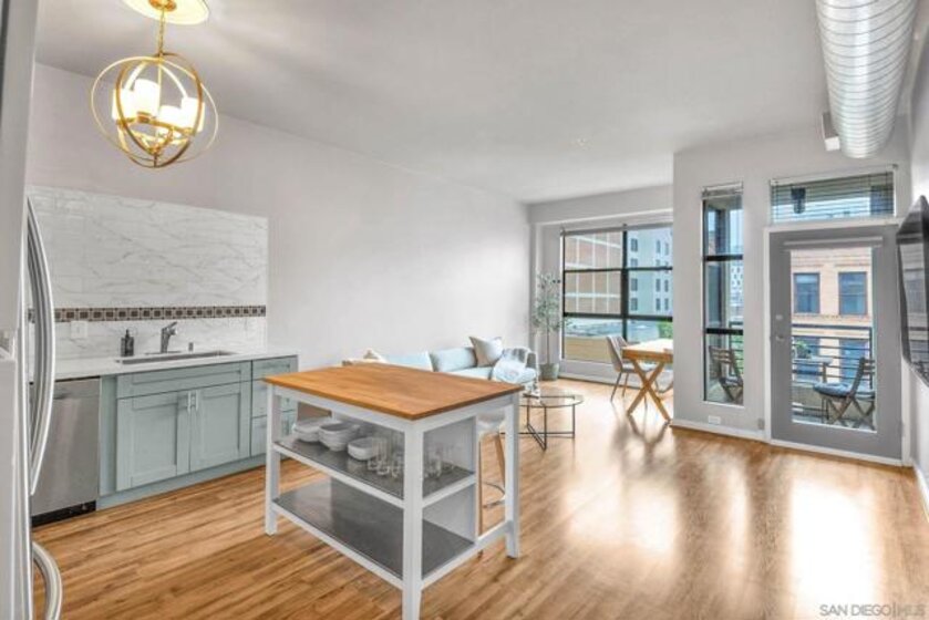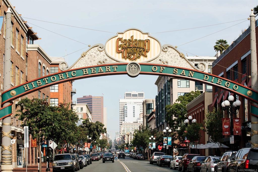 Welcome to your light-filled modern industrial loft in the heart of San Diego’s vibrant Gaslamp Quarter. This stylish 1-bedroom residence blends contemporary design with the energy of downtown living, featuring soaring ceilings, floor-to-ceiling windows, and an open-concept layout that floods the space with natural light. The updated kitchen flows seamlessly into the spacious living area—perfect for entertaining or unwinding after a day in the city. Step outside to your private patio, an ideal spot for morning coffee or evening cocktails while taking in the buzz of the Gaslamp below. Additional highlights include in-unit laundry, one oversized assigned underground parking space, and a low HOA—a rare combination for downtown living. Residents enjoy access to a courtyard with BBQ area and a fitness center. Located just steps from Petco Park, the Gaslamp Artisan Market, the waterfront, Convention Center, trolley access, and some of San Diego’s best dining, coffee, nightlife, and shopping—this is true walkable urban living at its finest. VA approved. Whether you're a first-time buyer, investor, or looking for a downtown lifestyle upgrade, this is an opportunity you don’t want to miss.