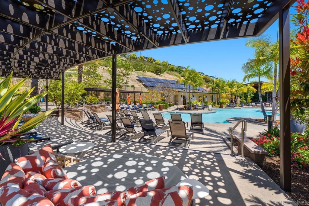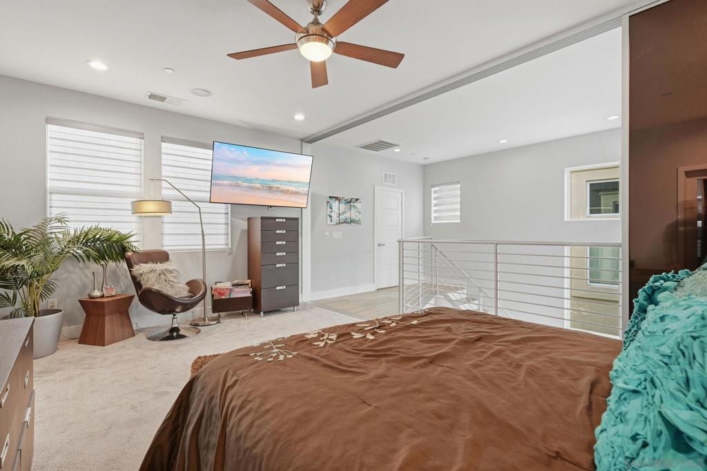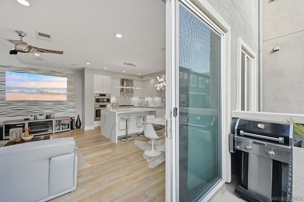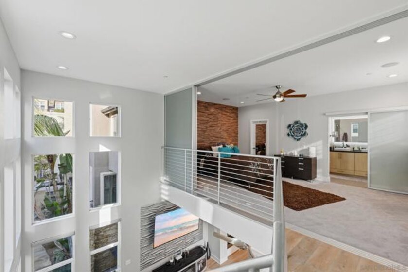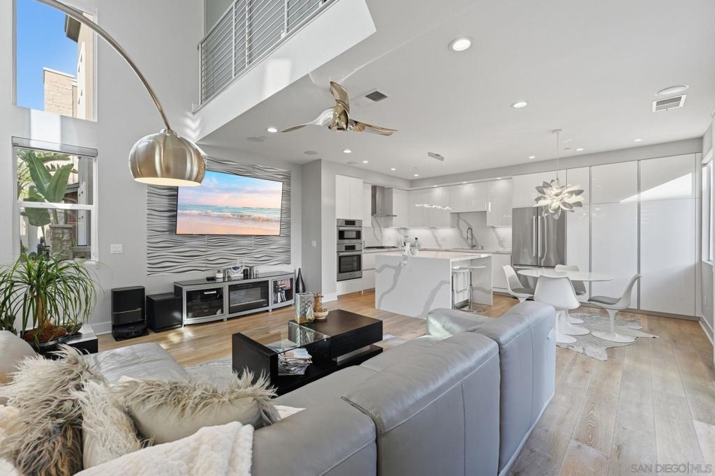 This sun-drenched corner courtyard 3-story townhome features an array of luxury features. With a convenient 1st-floor bedroom/office & full bath and direct access to the 2-car epoxy covered garage. The 2nd floor "wow" factor includes soaring 2-story ceilings and massive windows bridging 2nd & 3rd floors with the open floor plan. Fully remodeled chef’s kitchen boasts an abundance of white Italian cabinetry paired with white & gray quartz counters, full backsplash, huge waterfall island, and Bosch Wifi-enabled appliance suite including wall oven & micro, hood and panel dishwasher. The lofty 3rd-floor primary suite features unique stacking doors to open the room up or create privacy and an expansive bonus space. Smart home tech includes Google Mesh System, Nest thermostat, Ring doorbell, 2GIG security, & Wifi enabled garage door. Newer LG full size stacked washer and dryer at 3rd floor laundry. Surround sound & LED lighting throughout. Truly turnkey! Award-winning Civita offers a sophisticated, walkable lifestyle centered around a 14-acre community park featuring an outdoor amphitheater, BBQ areas, and basketball court. Residents enjoy exclusive access to a world-class recreation center with two resort-style pools, spas, a state-of-the-art gym, and a social party room. on-site management, and roaming security for peace of mind. Perfectly located in the heart of Mission Valley, Civita blends luxury amenities with unparalleled convenience.