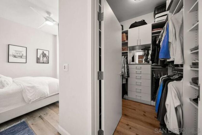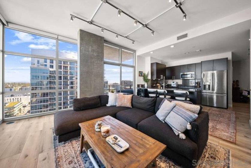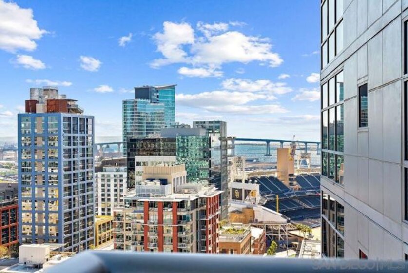 A true standout at The Mark, Residence 2104 is a fully remodeled high-floor residence that feels like a trophy in the sky. Offering sweeping skyline views, exceptional natural light, and a rare oversized private balcony that elevates everyday living. Floor-to-ceiling windows with custom automatic shades create a dramatic sense of openness, while the expansive balcony serves as an ideal setting for entertaining, unwinding, or simply enjoying the energy of the city from above. The thoughtfully redesigned interior showcases a refined, modern aesthetic and a layout that lives beautifully. The updated kitchen opens seamlessly to the living and dining areas, creating a comfortable yet sophisticated environment. Custom California Closets built-ins provide elevated storage and organization, complementing the home’s clean lines and high-quality finishes. Every detail has been carefully considered, making this one of the most desirable residences in the building. Residents enjoy resort-level amenities including a saltwater pool and spa, fully equipped fitness center, meeting spaces, BBQ patios, pizza ovens, lush common areas, and an on-site guard for added peace of mind. Secure parking and professional management complete the experience at The Mark. Just moments from Petco Park, the Gaslamp Quarter, top dining, nightlife, and the waterfront, this is Downtown living at its most refined!