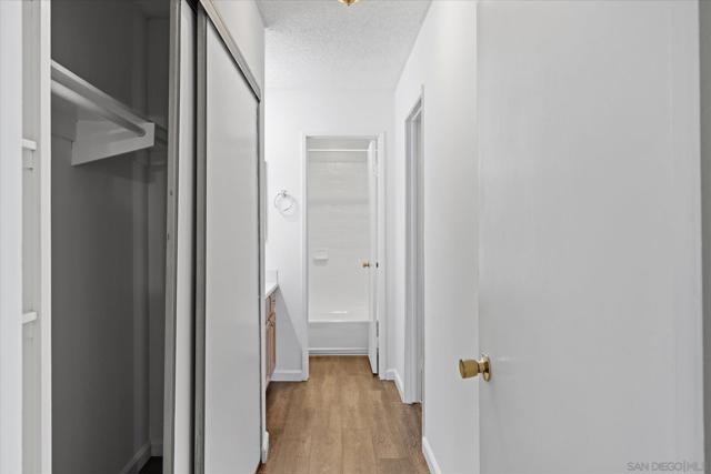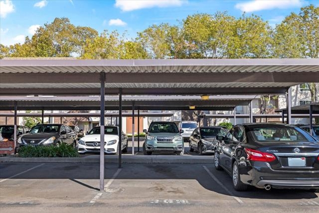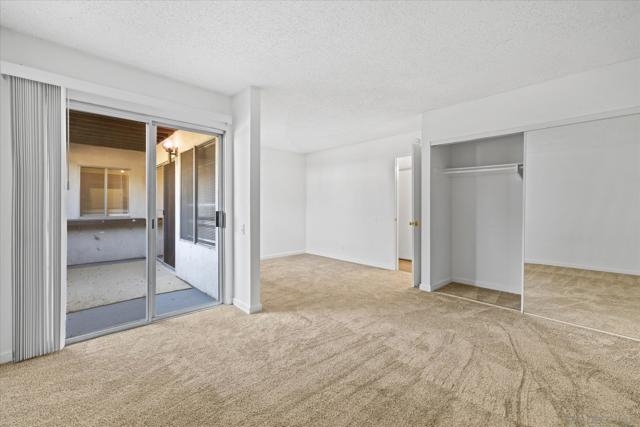 Discover comfort and convenience in the heart of Mission Valley! Tucked within a quiet, tree-lined community, this spacious condo offers a serene escape with cool summer breezes and cozy warmth in winter. Step inside to a generous living area featuring newer plank flooring and a sliding door that opens to your private patio—perfect for relaxing or entertaining. A separate dining area connects seamlessly to the kitchen, which boasts a new refrigerator and stove (installed in 2025). The extra-large bedroom includes fresh carpeting and a bonus space—ideal for a home office or reading corner, as well as private access to the patio. The bathroom was refreshed in 2024 with a refinished tub and updated vanity lighting, adding a modern touch. Ample storage can be found in the hallway and bedroom closets, keeping everything neatly organized. Beyond your front door, enjoy resort-style amenities: a sparkling pool and spa, BBQ area, clubhouse, and on-site laundry facilities. With an assigned parking space and a prime location minutes from shopping, dining, and the scenic San Diego River Trail, this Mission Valley gem perfectly balances convenience, comfort, and style—right in the center of all that San Diego has to offer.