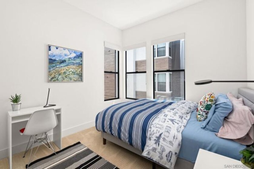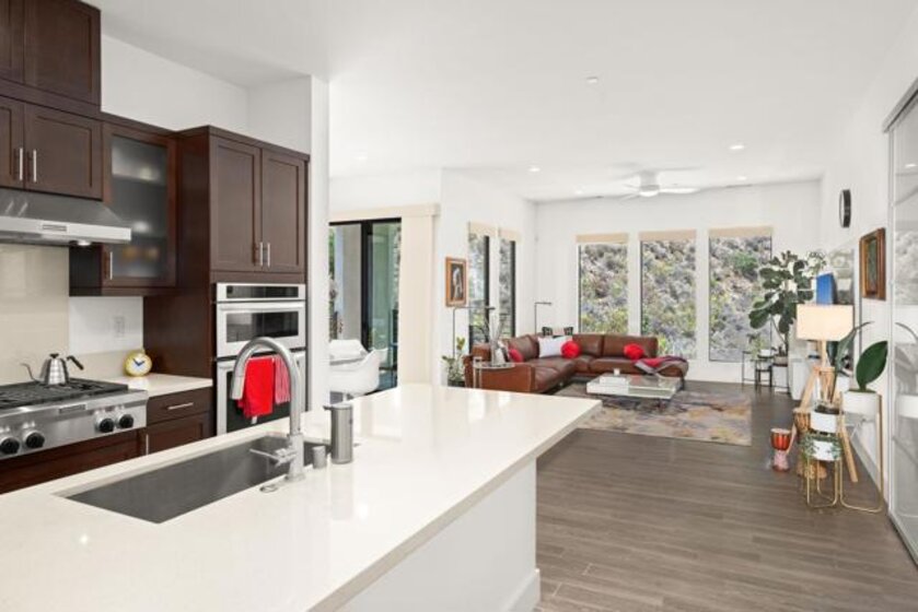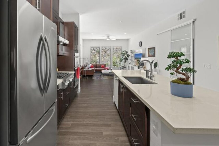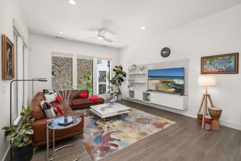 Experience unparalleled single-level living at Civita, at Lucent. From the moment you enter the lobby and ascend via the elevator to the third floor, you're welcomed into a luxurious home where a lush hillside view greets you immediately, offering the utmost in privacy and serenity. Spanning 1,630 square feet, this residence offers an expansive and airy feel, accentuated by high ceilings, oversized windows, and a thoughtfully designed layout. This corner unit boasts a wrap-around patio facing west, complete with corner sliders that seamlessly blend indoor and outdoor spaces, inviting the lush landscape inside. The home features three generously sized bedrooms, two full bathrooms, and a convenient powder room near the entry. Nestled in one of Civita's most serene and secluded areas, this residence provides unparalleled tranquility and privacy, far removed from major roadways. Lucent amenities include a private two-car garage, elevator access to all levels, and a pool and spa located just steps from your front door. Residents enjoy exclusive access to Civita's renowned resort-style facilities at the Civita Recreation Center, featuring two resort-style pools, a state-of-the-art two-story fitness center, outdoor lounge areas with fire pits, BBQ stations, and a resident lounge. Additionally, this home is merely a short stroll from the picturesque 14-acre Civita Park, offering lush gardens, meandering trails, basketball courts, a leash-free dog park, amphitheaters, and expansive lawns for picnics and events. Civita perfectly balances urban accessibility with the charm of community living, all within a convenient 15-minute drive.