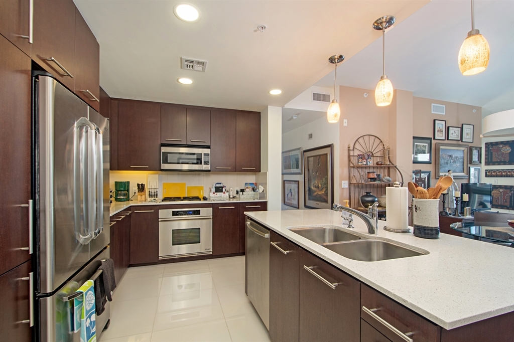 Top Floor! Consistent with it's superior Mission Hills address, residences are superbly finished in rich and contemporary color schemes; kitchens are appointed with Hansgrohe fixtures, Dacor gas cooktop, electric oven, Side by side (freezer down) refrigerator, undermount sink, undercabinet lighting,cesarstone counters, "soft close" drawers, corner lazy susans & full height backsplash. Master baths include hand tiled soaking tubs, designer light sconces, and raised wash basins. wheel chair accesssible. Penthouse! Residences offer 10 ft ceilings, smooth textured walls, and solid core doors. 1Mission common areas reiterate the luxury and attention to detail, as a gorgeous mosaic wall appoints the entry, wide, spacious halls are recessed lit and wood veneer panels enrich each home entry. Common "al fresco" patio encourages outdoor gatherings with gas grills, fireplace, seating areas and water feature. Outside the hub bub of downtown, but near enough to visit it, 1Mission is an enclave unto it's own; a 1 of a kind product in a 1 of a kind location!. Neighborhoods: mission Hills Equipment: Dryer, Washer Other Fees: 0 Sewer: Sewer Connected Topography: LL