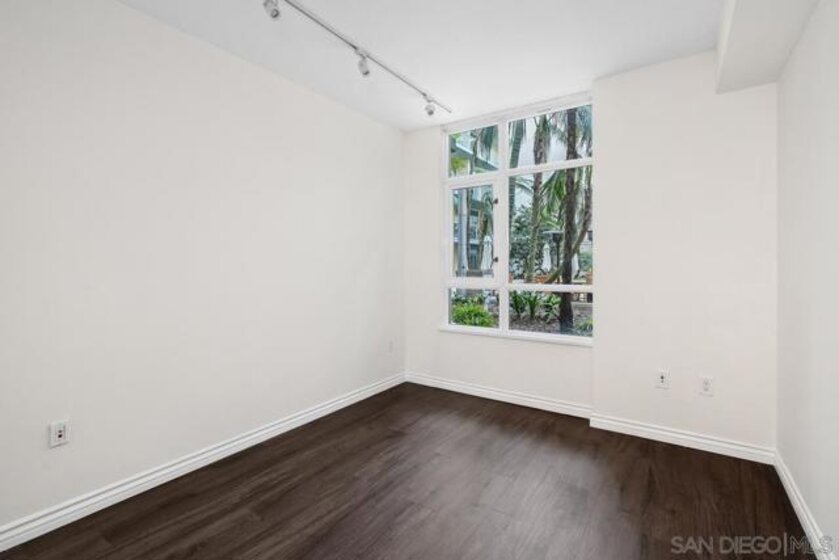 Discovery at Cortez Hill offers premium amenities including concierge service, 24-hour security, and a stunning rooftop deck with a lap pool, jacuzzi, cabanas, fire pits, BBQs, and panoramic views of San Diego. This freshly painted, 2-bed, 2-bath ground-level condo features brand-new carpet and combines downtown convenience with peaceful, residential living—perfect for families, pet owners, or anyone who prefers easy, stair-free access. Unlike many upper units that get full sun exposure and heat up quickly, this home enjoys natural shade and minimal direct sunlight, helping it stay cool and comfortable in the summer without running the A/C all day. Step outside to a rare, oversized private patio that opens to a lush community terrace—creating a serene, open-air feel rarely found in the city. The unit is also just steps from the building’s business center, library, and shared patio. Located just minutes from Balboa Park, Little Italy, and downtown—but tucked away in one of the city’s quietest, most desirable neighborhoods. Extremely dog-friendly, with one assigned parking space (G306) conveniently located near the entry gate and elevator.