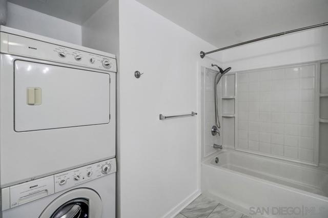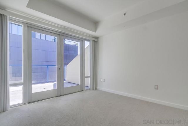 NEWLY REFRESHED ONE BEDROOM IN NEXUS WITH A GENEROUS "TWO ZONE" BALCONY IN THE EXCITING EAST VILLAGE! Just painted in OCTOBER 2025! NEW HVAC IN 2024! New LARGE CAPACITY front load washer & dryer scheduled for install mid October 2025. Updated light fixtures and freshly painted two tone kitchen cabinets. New bedroom carpet. Engineered wood flooring. Fantastic location just 3 blocks from Petco Park, a short hop to the dynamic Gaslamp District & all of Downtown with scores of fantastic restaurants & shops. NEXUS HOA amenities include a modernist lobby with mail and package delivery, a well equipped community gym, a secure bike storage room, one assigned parking space in the gated underground lot, and a rooftop community patio with barbecue & great city views. THIS ONE IS MOVE IN READY.....MAKE IT YOURS TODAY!!