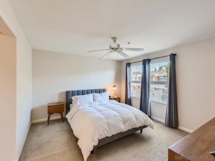 Welcome to a beautifully designed home at Spectrum Center, blending modern elegance with effortless urban living. This highly desirable Esplanade Plan 2 townhome offers 2 bedrooms and 2.5 baths, along with a thoughtfully designed layout and modern comforts in one of San Diego’s most vibrant communities. Step inside to discover Brazilian hardwood flooring complemented by plush carpet, creating a warm and refined interior. Freshly painted throughout and move-in ready, the home’s second level showcases an open-concept design ideal for both everyday living and entertaining. The kitchen features granite countertops, stainless steel appliances, and a new microwave, seamlessly connecting the living, dining, and kitchen spaces. Additional storage in the laundry and bedroom areas enhances both comfort and functionality. Just steps from a beautifully maintained greenbelt park, this townhome offers a balance of peaceful surroundings and urban convenience. Enjoy a walkable lifestyle with nearby access to the Centrum Community Park and dog park, YMCA, library, coffee shops, restaurants, and shopping. With convenient freeway access and a central location, commuting throughout San Diego is both easy and efficient. Please be sure to experience the comfort, convenience, and vibrant lifestyle this Spectrum Center home has to offer!