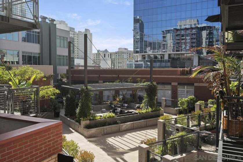 Step into this stunning, fully reimagined 1 bedroom + den Parkloft residence where urban sophistication meets modern comfort. This New York–style loft showcases soaring 10-foot ceilings, newly added walls, and over $25K in custom Rustica glass and metal doors that define the space with style and function. The versatile den offers options for a guest room, home office, or creative retreat, while the open-concept living area perfectly balances industrial charm with modern warmth. The chef-inspired kitchen boasts dramatic quartz waterfall counters, full backsplash, high-end Samsung and Subzero appliances, and designer lighting that enhances every gathering. The spa-like primary bath features large-format tile, vivid lighting, dual vanities, a jetted soaking tub, and a walk-in frameless glass shower. French doors off the great room open to a private balcony—complete with a natural gas hookup—ideal for entertaining or simply relaxing in the heart of East Village’s vibrant Ballpark District. One SUV-sized parking space and private storage room also included. Attention to detail continues throughout this residence, from the built-out primary closet with mirrored barn door to the thoughtfully redesigned guest bath with custom vertical tile and curated fixtures. Additional upgrades include newer front-load laundry, custom built-ins for storage, hard-surface flooring throughout, and designer lighting in every room. Smart-home features such as a Nest thermostat and LED accent lighting provide added convenience and energy efficiency. Parkloft offers an exceptional urban lifestyle with an attended Zen-inspired lobby, state-of-the-art fitness center, beautifully landscaped courtyard, and resident lounge with kitchenette—perfect for entertaining. Just steps from Petco Park, the Gaslamp Quarter, and the Marina District, this move-in-ready home blends privacy and sophistication with the best of Downtown San Diego living.