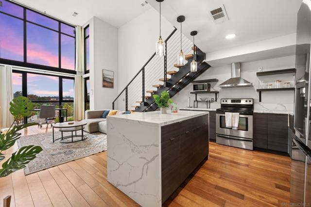 Welcome to this striking two-story loft unit at 889 Date St #520, offering an oversized open floor plan with dramatic 18-foot ceilings and floor-to-ceiling windows that flood the space with natural light. Nestled in the Aloft on Cortez Hill condominium, the home features 1 bedroom, 1.5 baths, and 847 square feet of thoughtfully designed living space with EV Charging avaliable. You’ll appreciate modern upgrades throughout, including new laminate flooring and brand new bathrooms and kitchen. Residents enjoy first-class amenities such as a pool, spa, fitness center, BBQ areas, and concierge service in a secure gated community. Situated in the heart of downtown, this gem puts Little Italy, the Gaslamp Quarter, Balboa Park, and more just steps away.