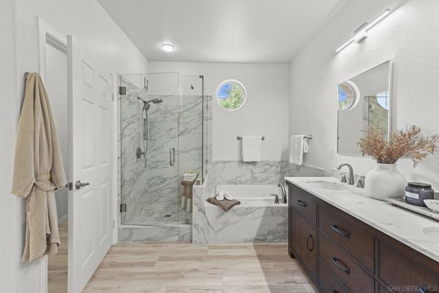 Rarely available Single Level home, where peace and privacy await in a truly magical outdoor setting. A charming brick pathway meanders through the lush yard, leading to a picturesque fig tree perfectly placed in harmony with its surroundings. Perched at the top of the hill near the clubhouse, this home enjoys an exceptional location with a spacious driveway and abundant guest parking— Step inside to find an interior that blends refined elegance with effortless comfort - A brand new remodeled primary bath and new wood floors in the bedrooms, spacious kitchen with direct access garage, abundant storage and interior laundry. Warm tones, clean lines, and tasteful decor create an atmosphere that feels both sophisticated and welcoming—a space you’ll love to call home.