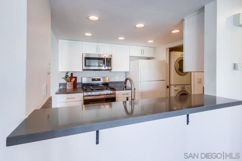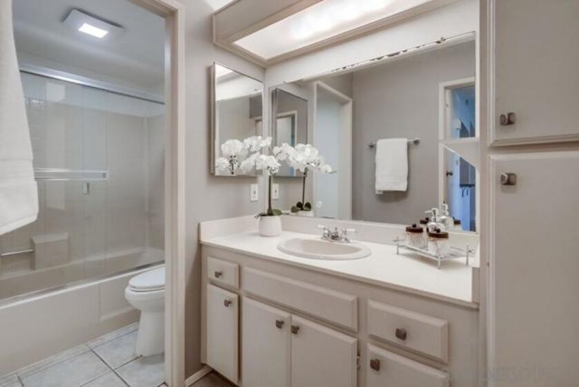 Fantastic top floor 2 bedroom, 2 bath unit in Casablanca, one of Rancho Peñasquitos’ most desirable communities. Beautifully updated kitchen with newer cabinets, solid surface countertops, stainless appliances, and recessed lighting. Spacious living room with gorgeous fireplace plus access to a generous balcony that includes an extra storage closet. The primary suite offers vaulted ceilings and an updated bathroom with newer vanity, while the secondary bath features incredible storage space. Enjoy peaceful mountain views to the north, one covered parking space with built in storage cabinets, and an additional assigned space conveniently located in front of the unit. Stackable washer and dryer inside the home. Excellent location within the complex with tranquil water features, lush landscaping, and community pool. Located in the award winning Poway Unified School District, close to shopping, restaurants, and the post office. Casablanca offers resort style living with multiple pools, community center, hot tubs and beautiful, serene water features plus lush, mature landscaping throughout. Located in the highly acclaimed Poway Unified School District. Very close to a major grocery shopping center, YMCA, the Rancho Penasquitos library, post office, numerous restaurants and shopping. Welcome Home!