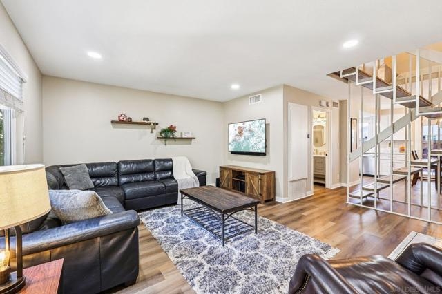 Welcome to Shadow Tree in Rancho Peñasquitos! This beautifully updated and centrally located 2-bedroom, 2-bath condo offers the perfect blend of comfort and convenience. The newer kitchen features upgraded cabinets, elegant quartz countertops, and stainless-steel appliances. Enjoy vinyl flooring throughout, creating a sleek and inviting ambiance. The spacious living area is bright and welcoming, while your private entry and outdoor back patio provide the ideal space to relax or entertain. Ideally situated within a mile of Mt. Carmel High School, this home is just minutes from the freeway, grocery stores, and a variety of restaurants. For added convenience, this rare condo offers direct garage access—a feature not often found in the community. Experience resort-style living with amenities such as a sparkling pool and relaxing hot tub. Plus, the HOA covers premium cable, internet, water, trash and sewer for a truly hassle-free lifestyle.